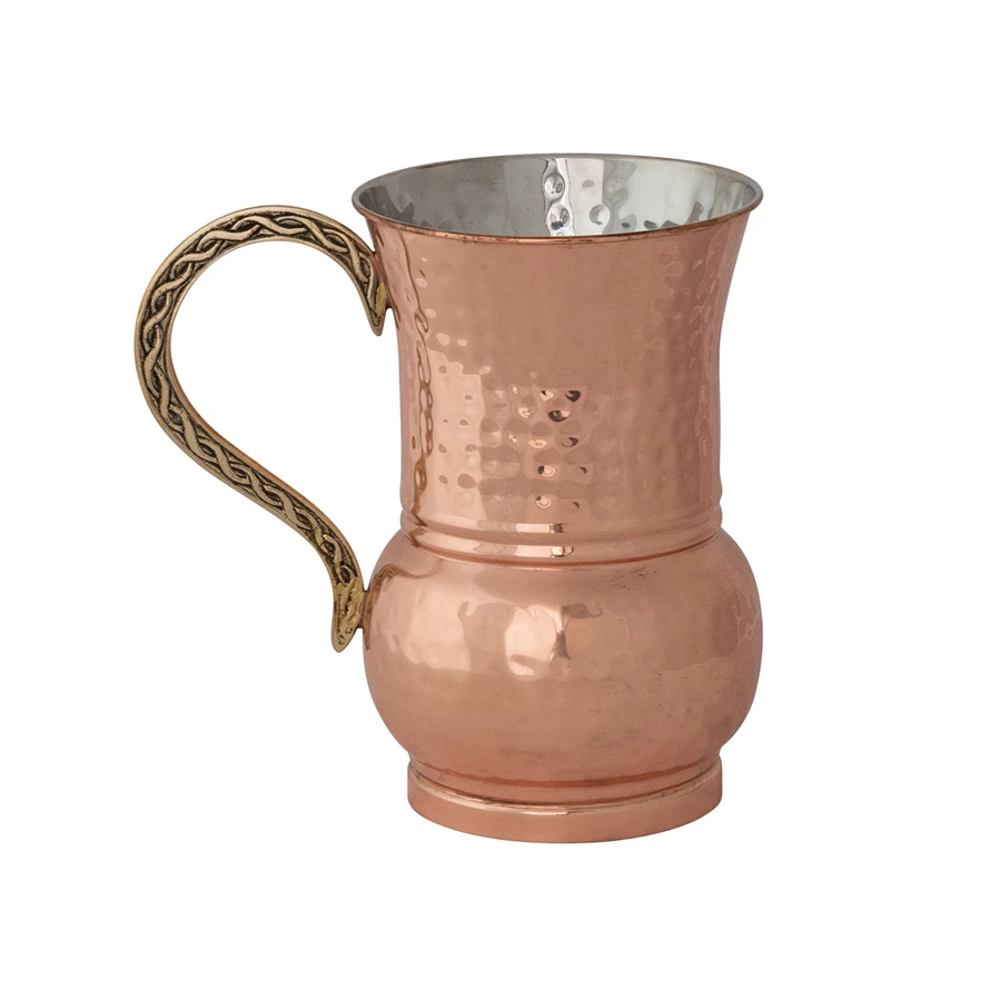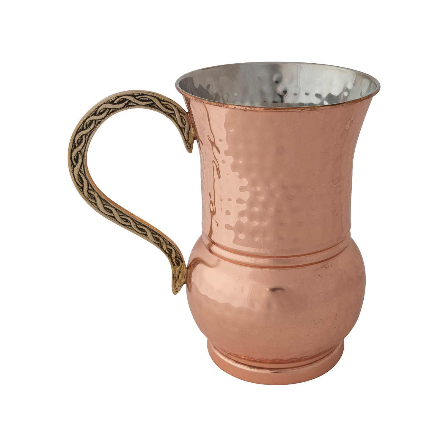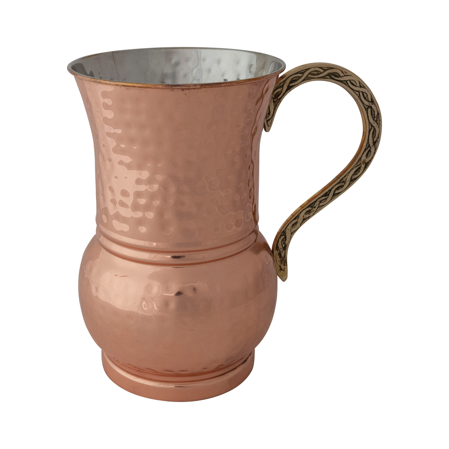 48 oz. Hammered Stainless Steel Pitcher with Brass Handle, Copper Finish