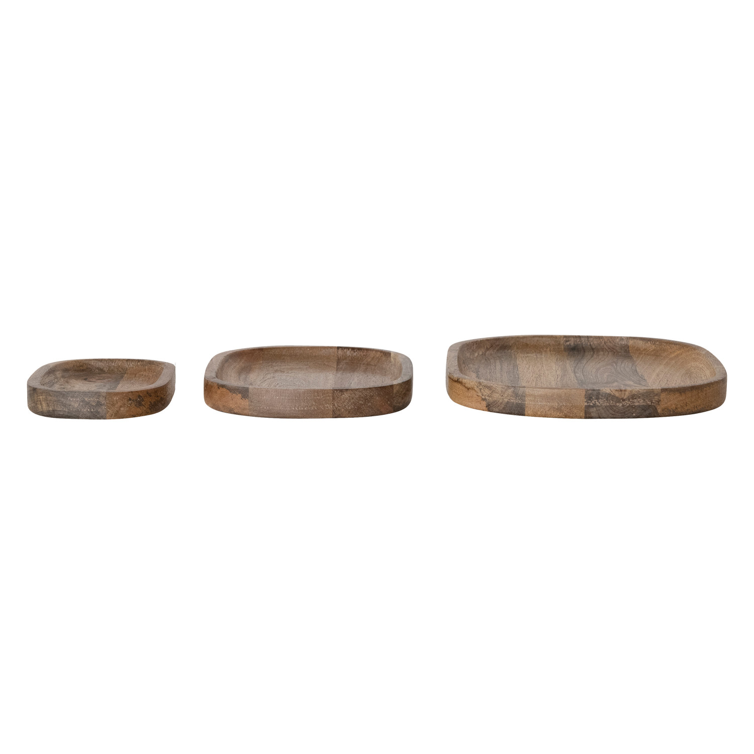 Catalog Name: 11-3/4"L x 9-1/2"W, 9-1/2"L x 7"W & 7"L x 4-3/4"W Oval Mango Wood Trays, Natural, Set of 3