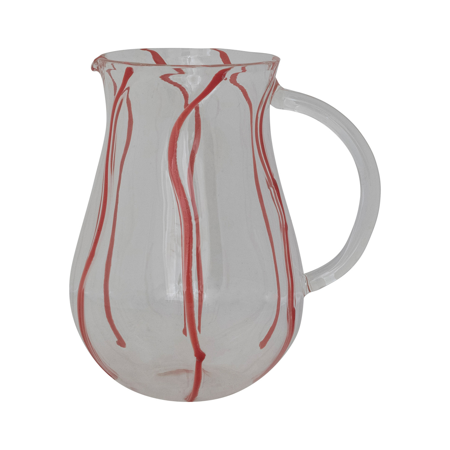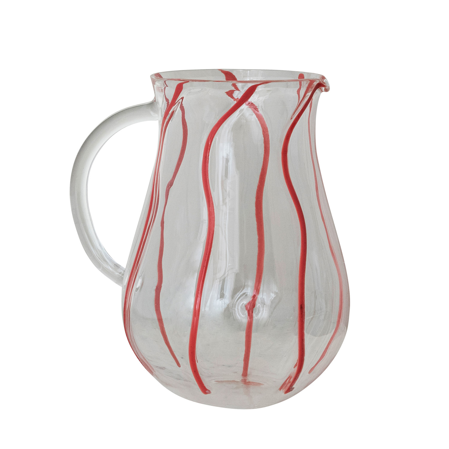 Catalog Name: 7-1/4"L x 5-3/4"W x 8"H 1-3/4 Quart Hand-Blown Art Glass Pitcher w/ Red Stripes