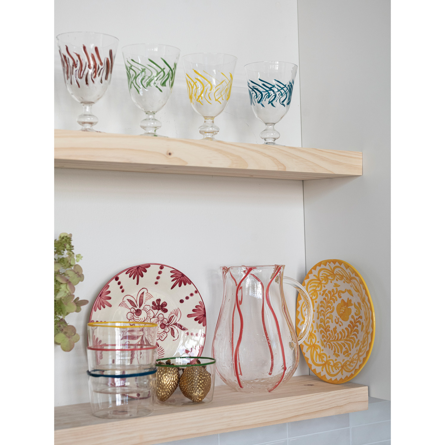1-3/4 Quart Hand-Blown Art Glass Pitcher with Red Stripes