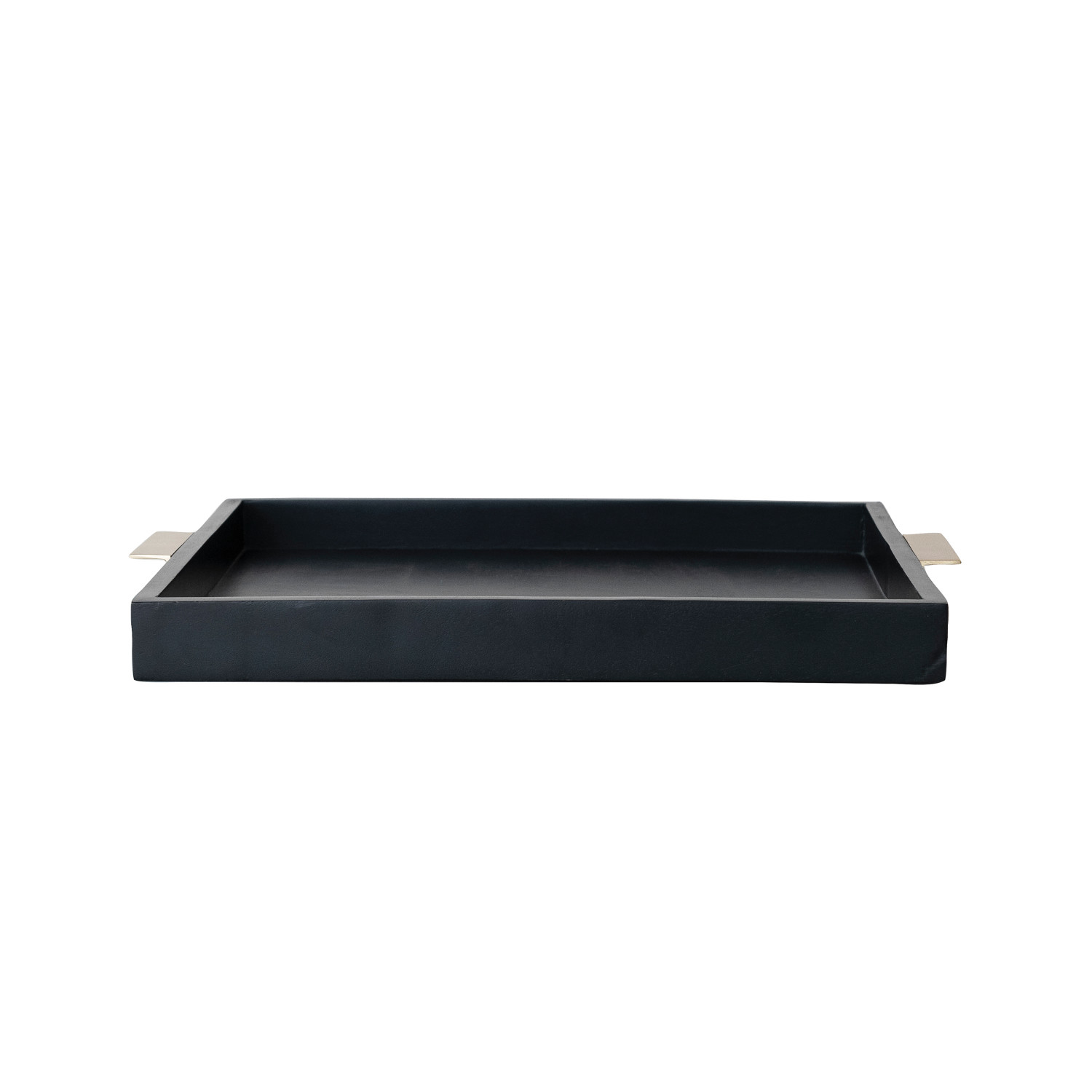 Mango Wood Tray with Metal Handles, Black & Gold Finish