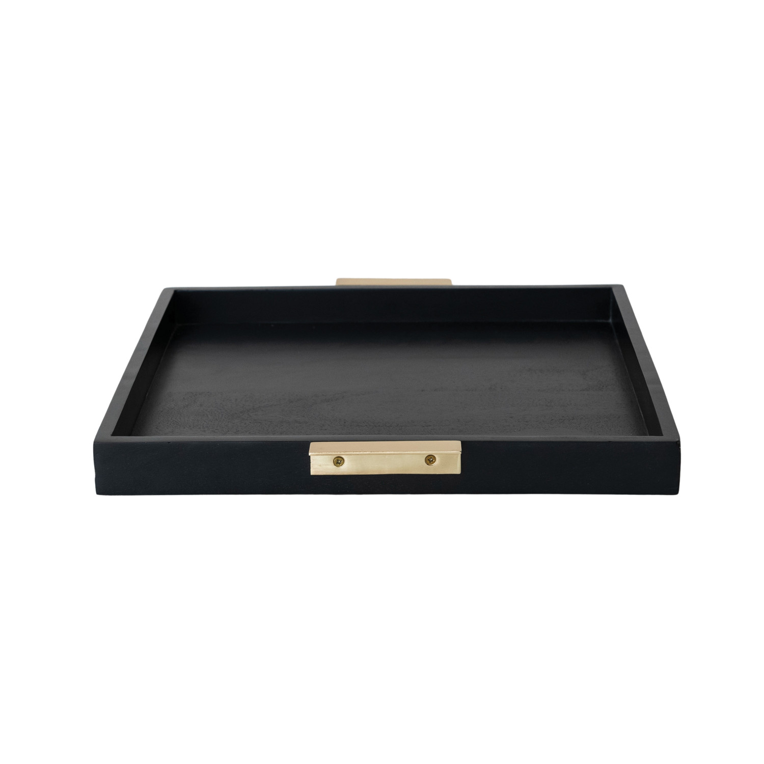 Catalog Name: 16" Square Mango Wood Tray w/ Metal Handles, Black & Gold Finish