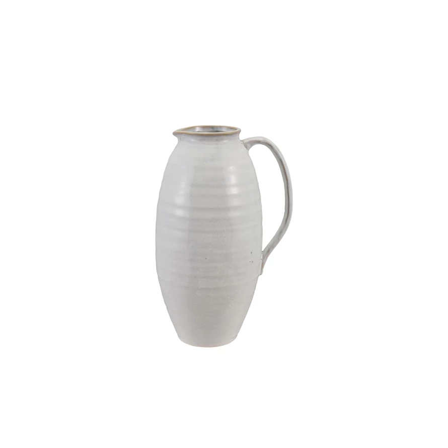 Catalog Name: 7"L x 6"W x 12-1/2"H 3-3/4 Quart Stoneware Pitcher, Reactive Glaze, White (Each One Will Vary)