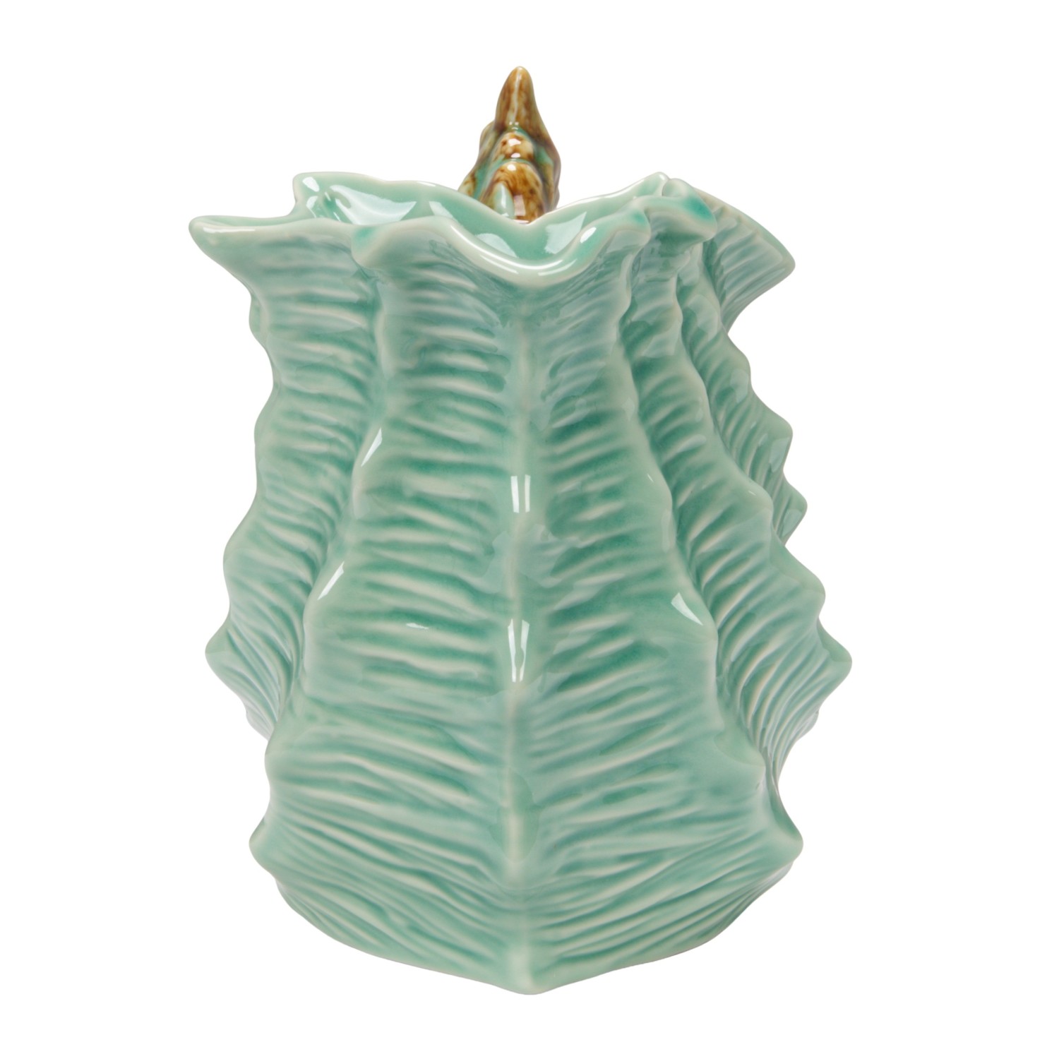 Catalog Name: 8-1/2"L x 5"W x 7"H 1 Quart Stoneware Shell Shaped Pitcher w/ Starfish & Shells Handle, Blue & Brown