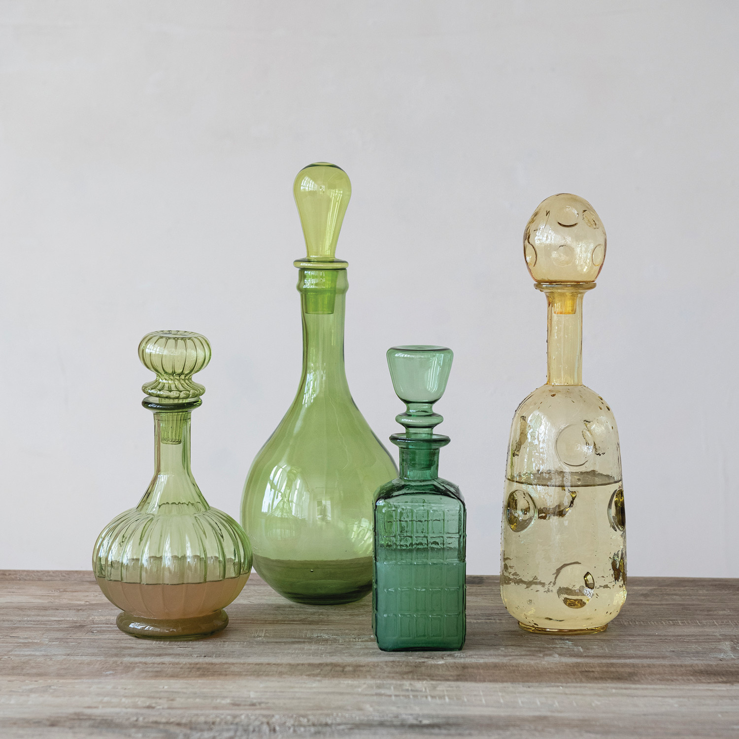 40 oz. Glass Ribbed Decanter with Stopper, Green