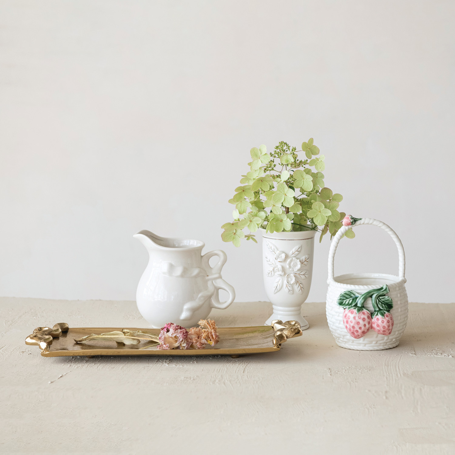 6-1/4"L x 5"W x 6"H 32 oz. Stoneware Pitcher with Bow Shaped Handle, White