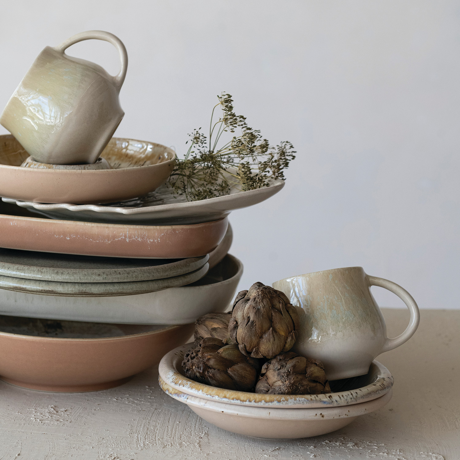 Catalog Name: 8-1/2" Round x 1-1/2"H Stoneware Chip & Dip, Reactive Glaze, Multi Color (Each One Will Vary)
