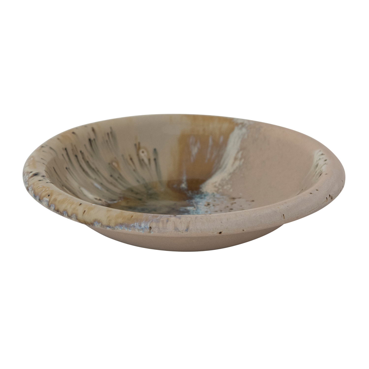 Catalog Name: 8-1/2" Round x 2-1/4"H Stoneware Low Bowl w/ Wide Rim, Reactive Glaze, Multi Color (Each One Will Vary)