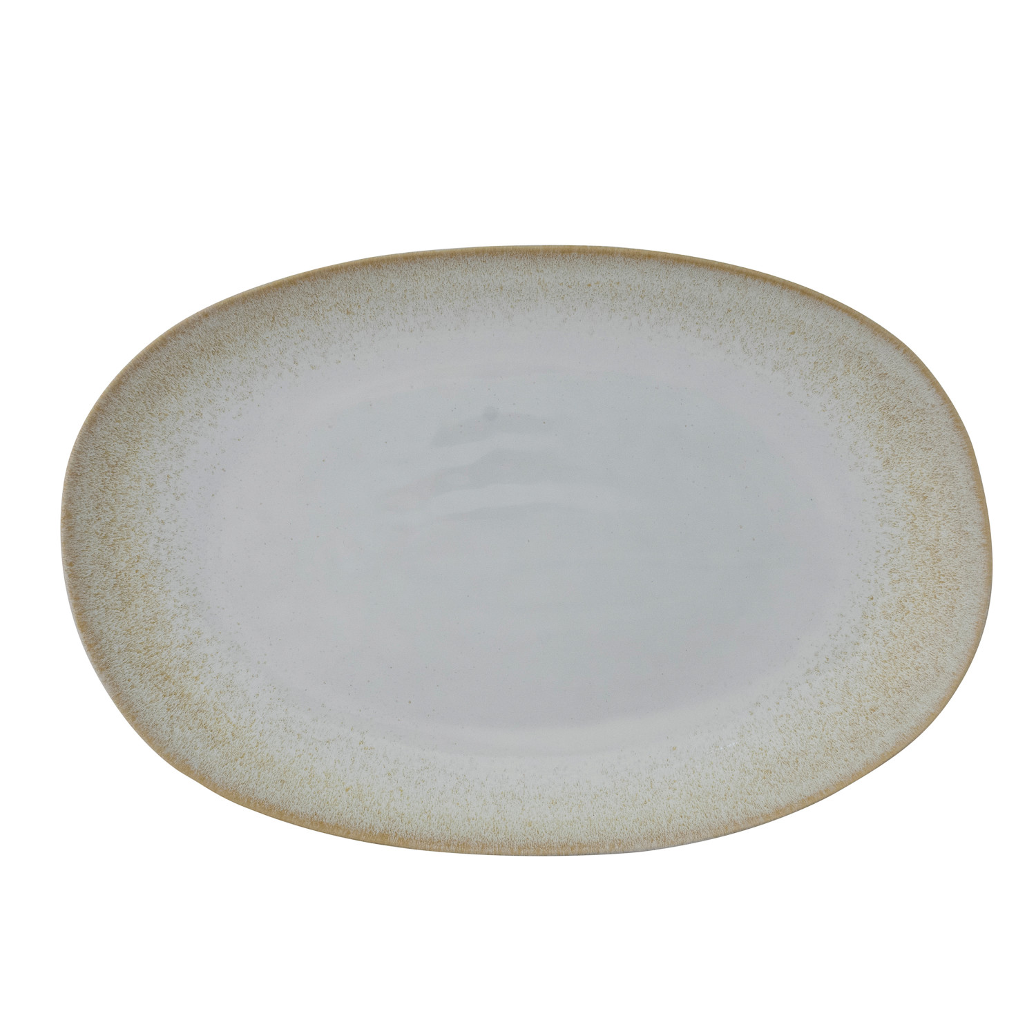 Catalog Name: 17"L x 11"W Stoneware Platter, Reactive Glaze, Cream Color (Each One Will Vary)