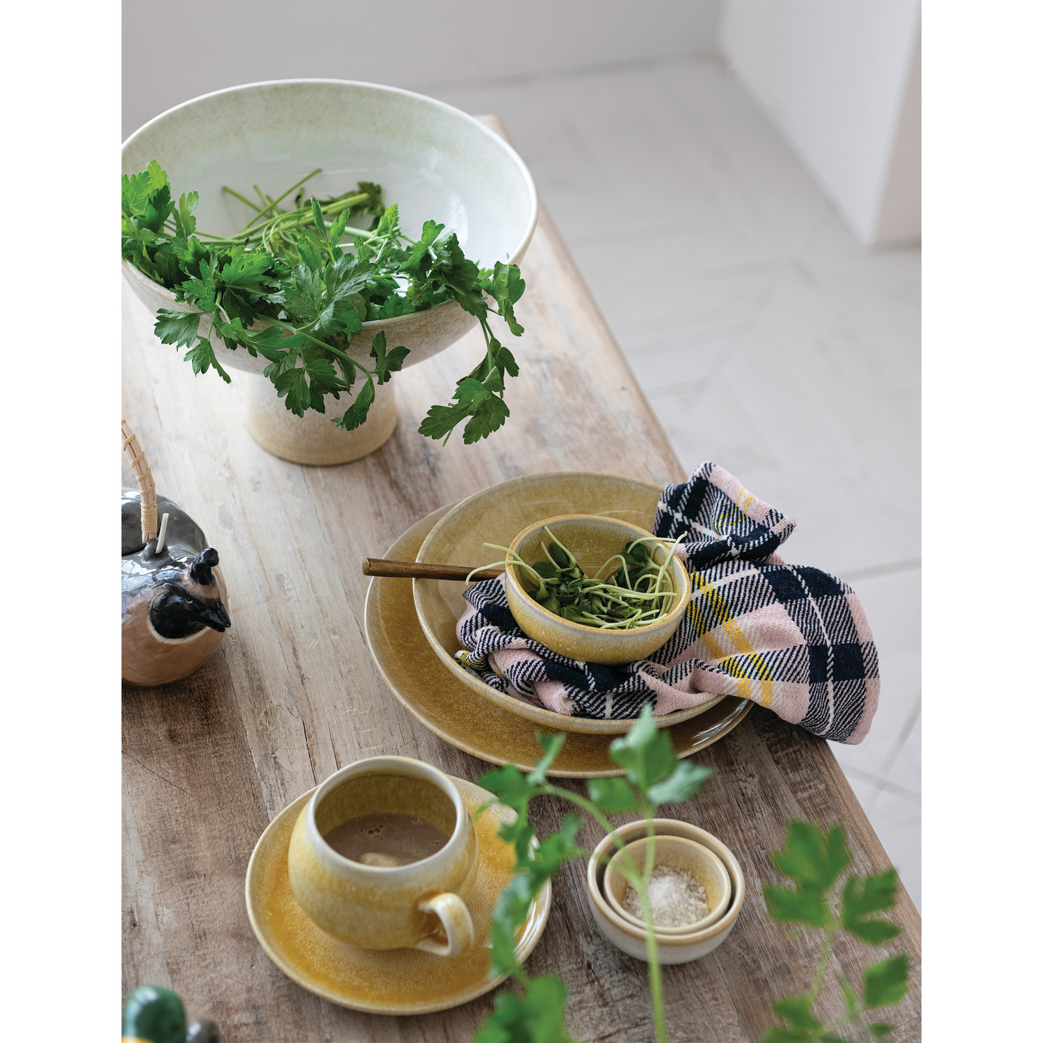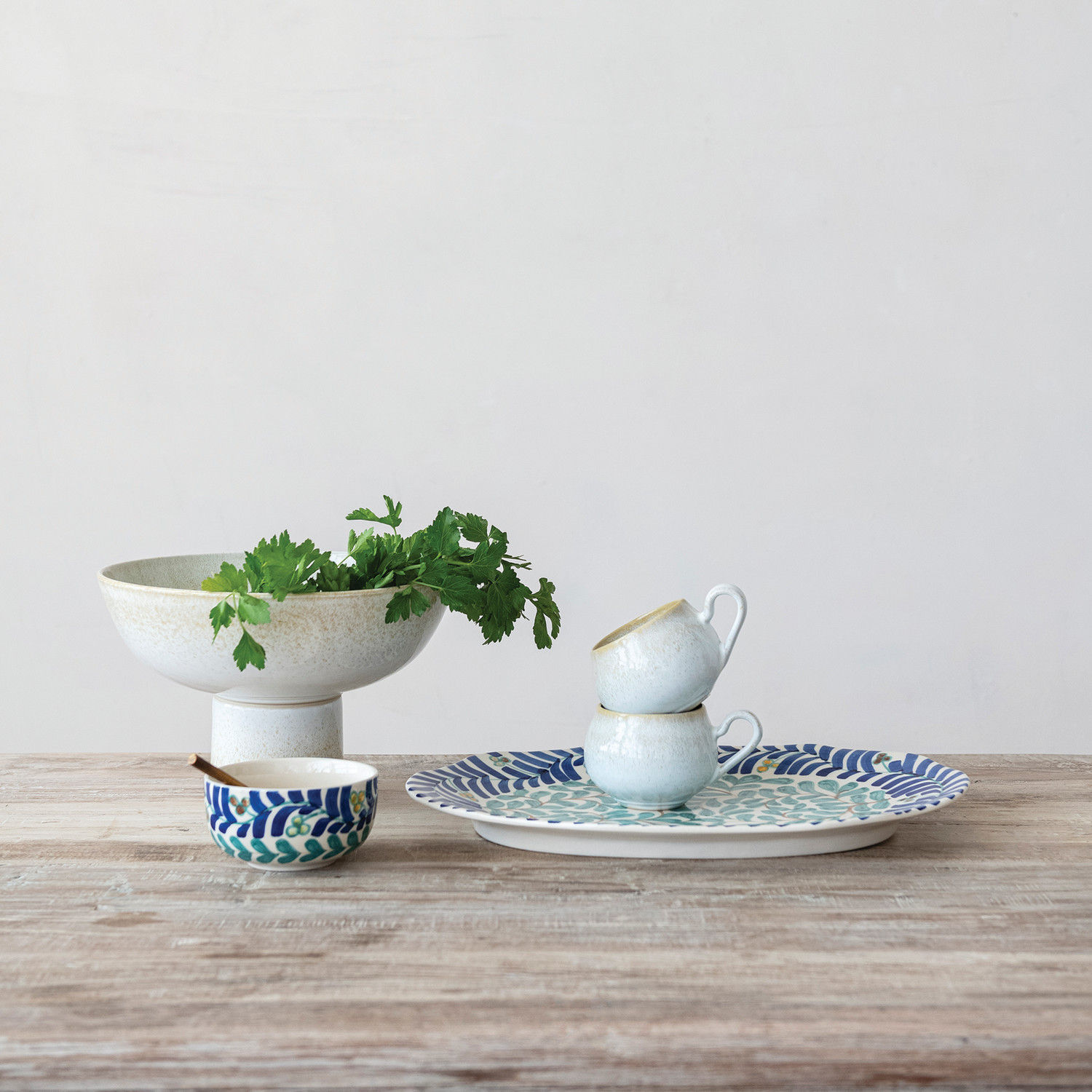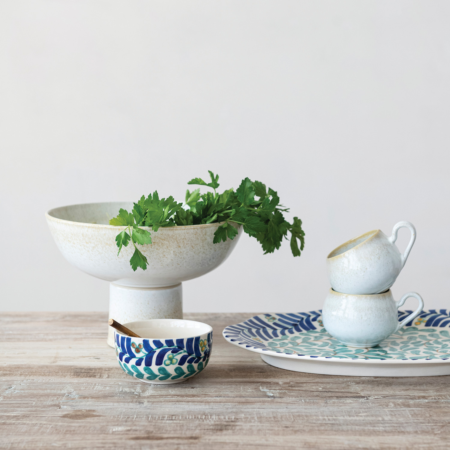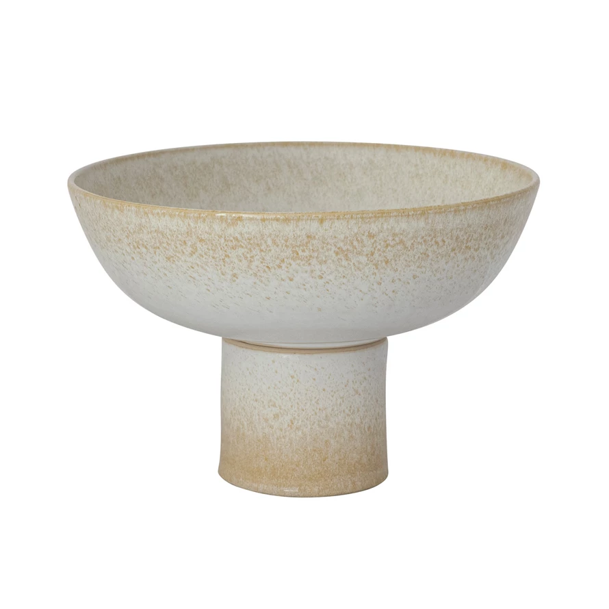 Stoneware Pedestal Bowl, Cream Color (Each One Will Vary)