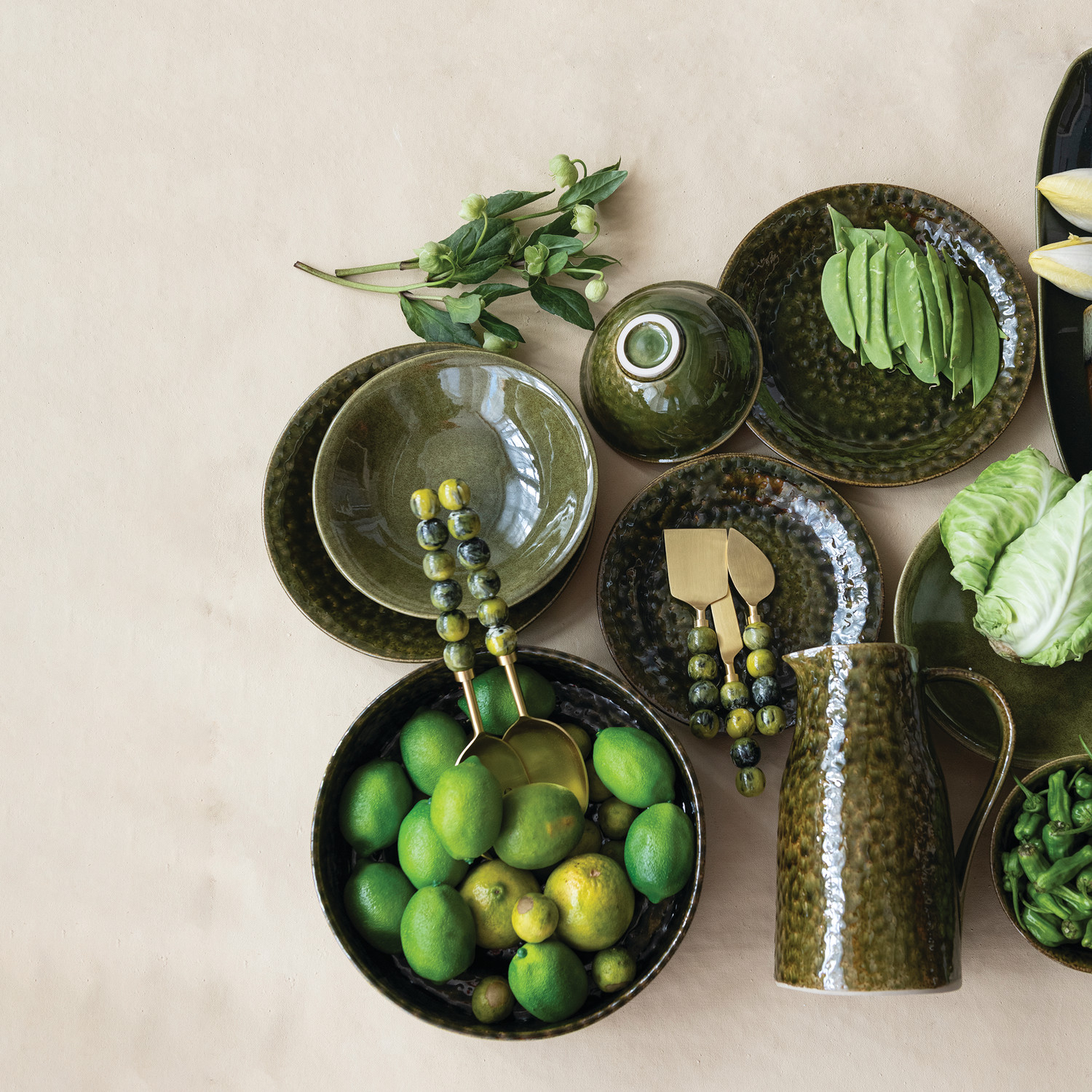 2 Quart Stoneware Pitcher, Green (Each One Will Vary)