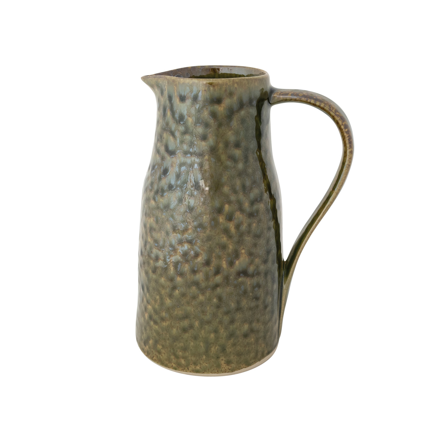 Catalog Name: 5-1/2" Round x 10"H 2 Quart Stoneware Pitcher, Reactive Glaze, Green (Each One Will Vary)