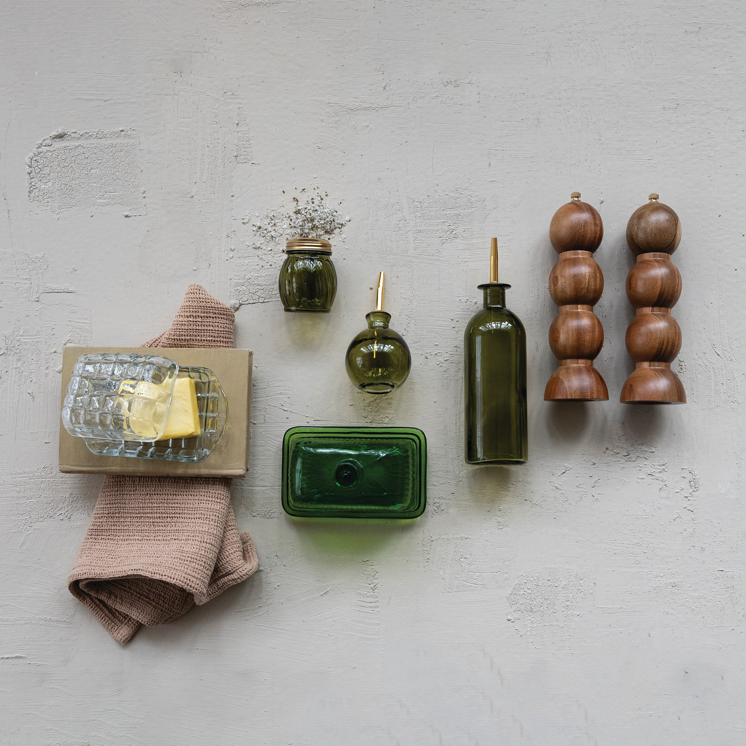 Glass Cheese/Spice Shaker with Metal Lid, Olive Color & Gold Finish