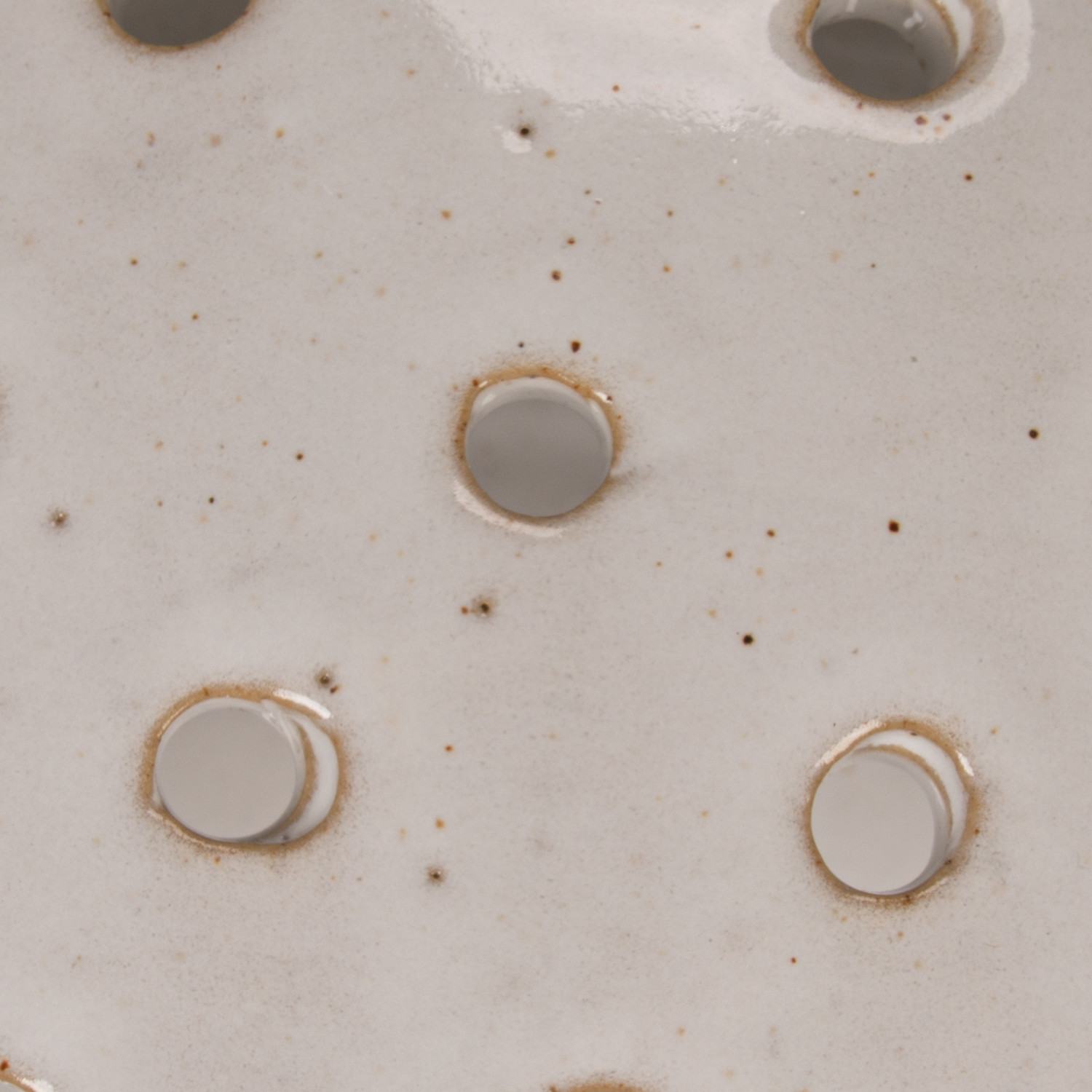 Catalog Name: 6-3/4" Round x 4"H Stoneware Strainer Bowl, Reactive Glaze, White (Each One Will Vary)