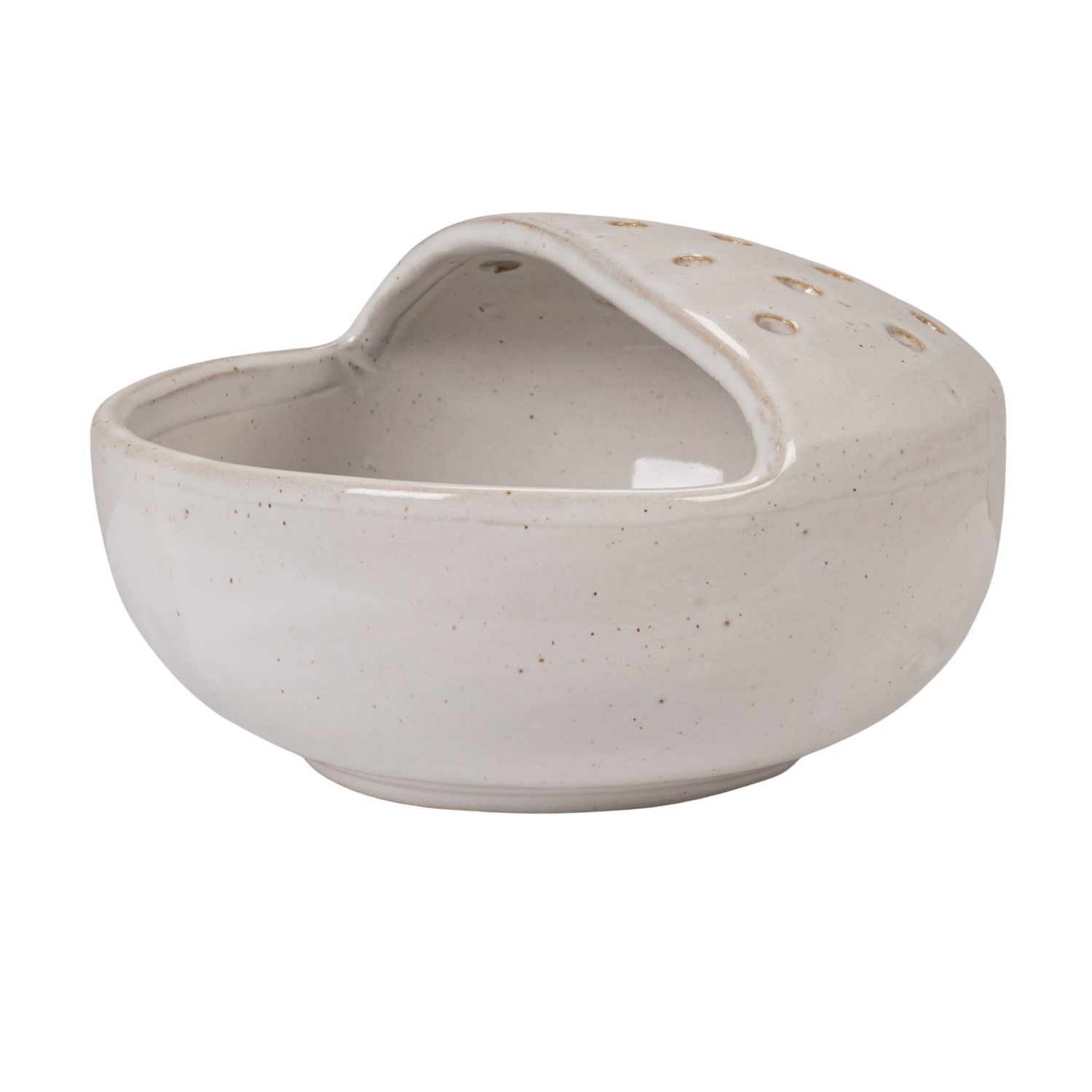 6-3/4" Round x 4"H Stoneware Strainer Bowl, White (Each One Will Vary)