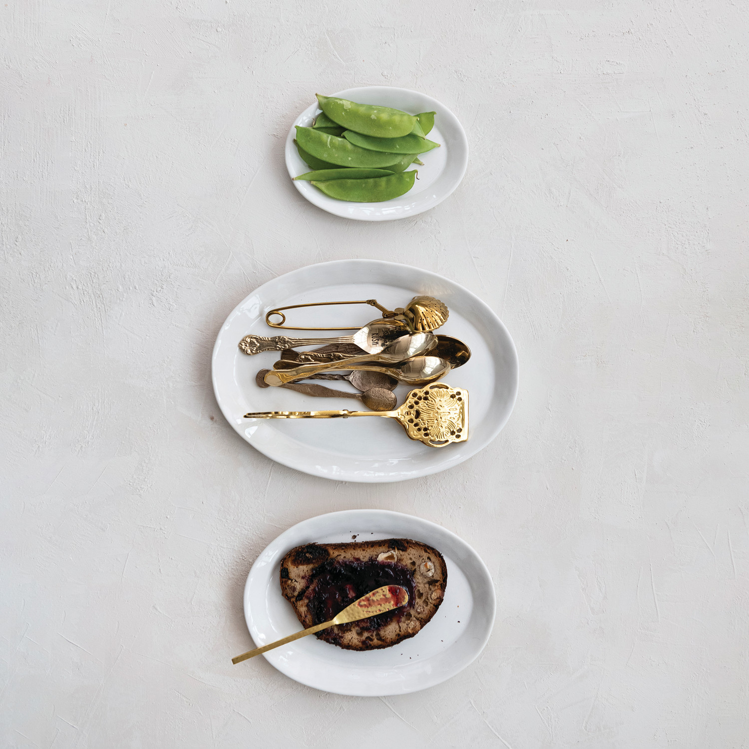 Stoneware Platters, White, Set of 3 (Each One Will Vary)