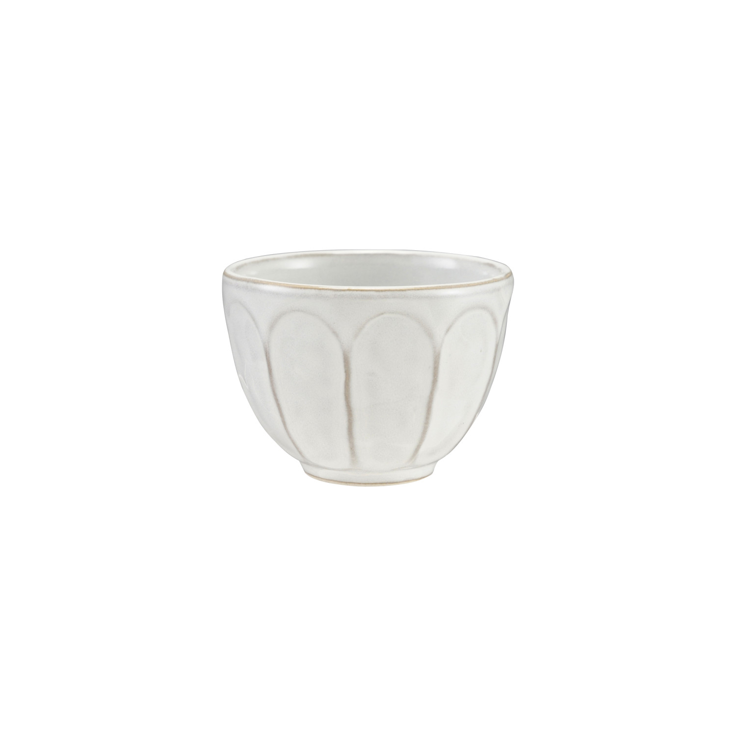 Catalog Name: 4" Round x 2-1/4"H Stoneware Ribbed Bowl, Reactive Glaze, White (Each One Will Vary)