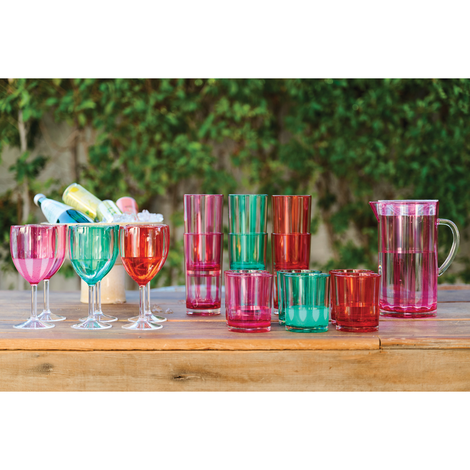 Catalog Name: 7-1/2"L x 5"W x 9-1/2"H 2-1/2 Quart Acrylic Pitcher w/ Stripes & Lid, Fuchsia Color