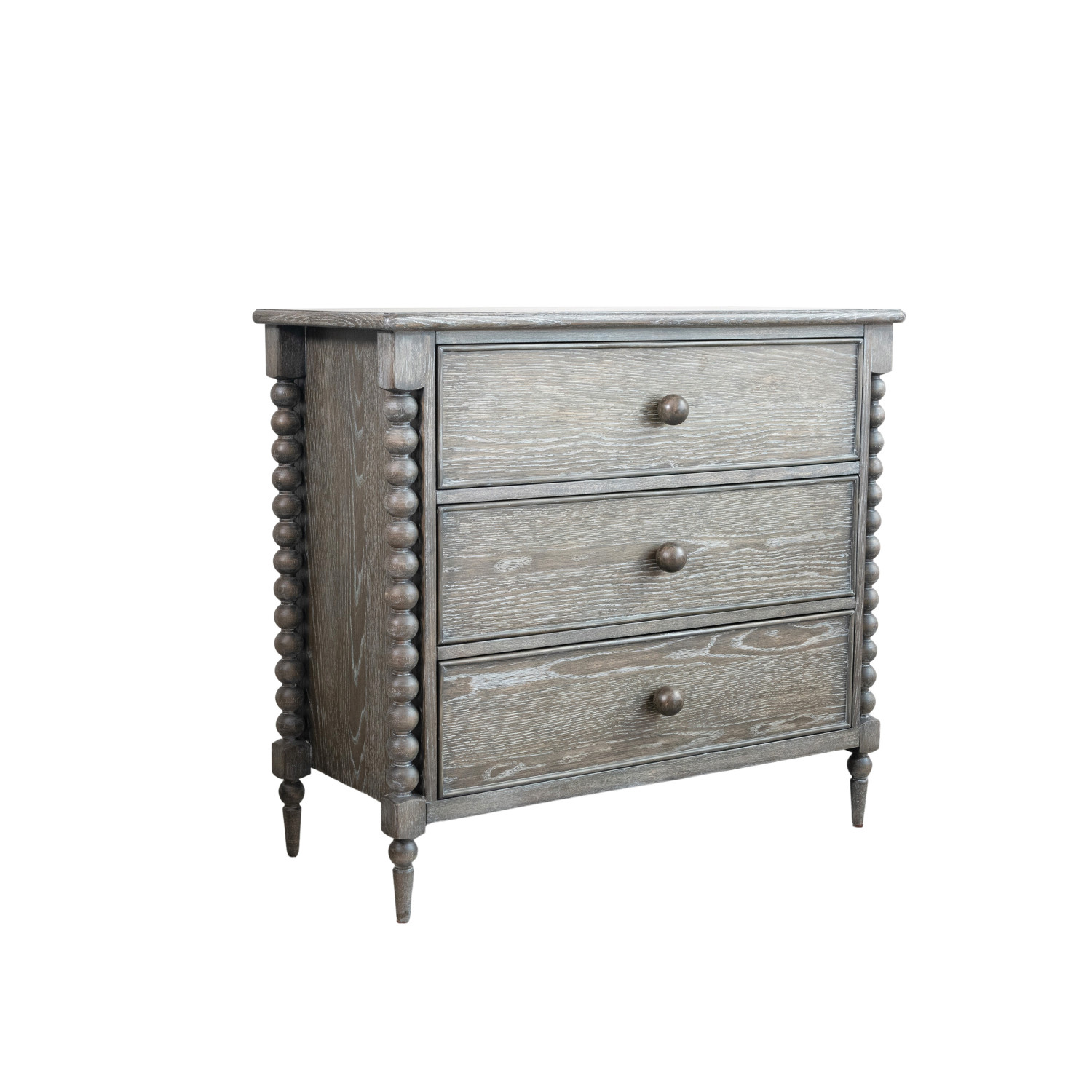 Catalog Name: 40-1/4"W x 17-3/4"D x 35-3/4"H Rubberwood & Oak Wood Veneer Dresser w/ Turned Legs & 3 Drawers, Grey Washed, KD, Truck Ship
