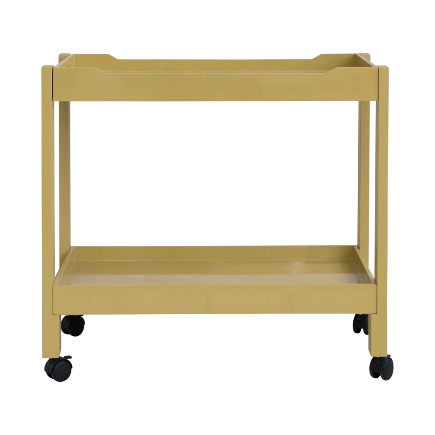 MDF & Acacia Wood Lacquered 2-Tier Bar Cart on Casters, Yellow, KD