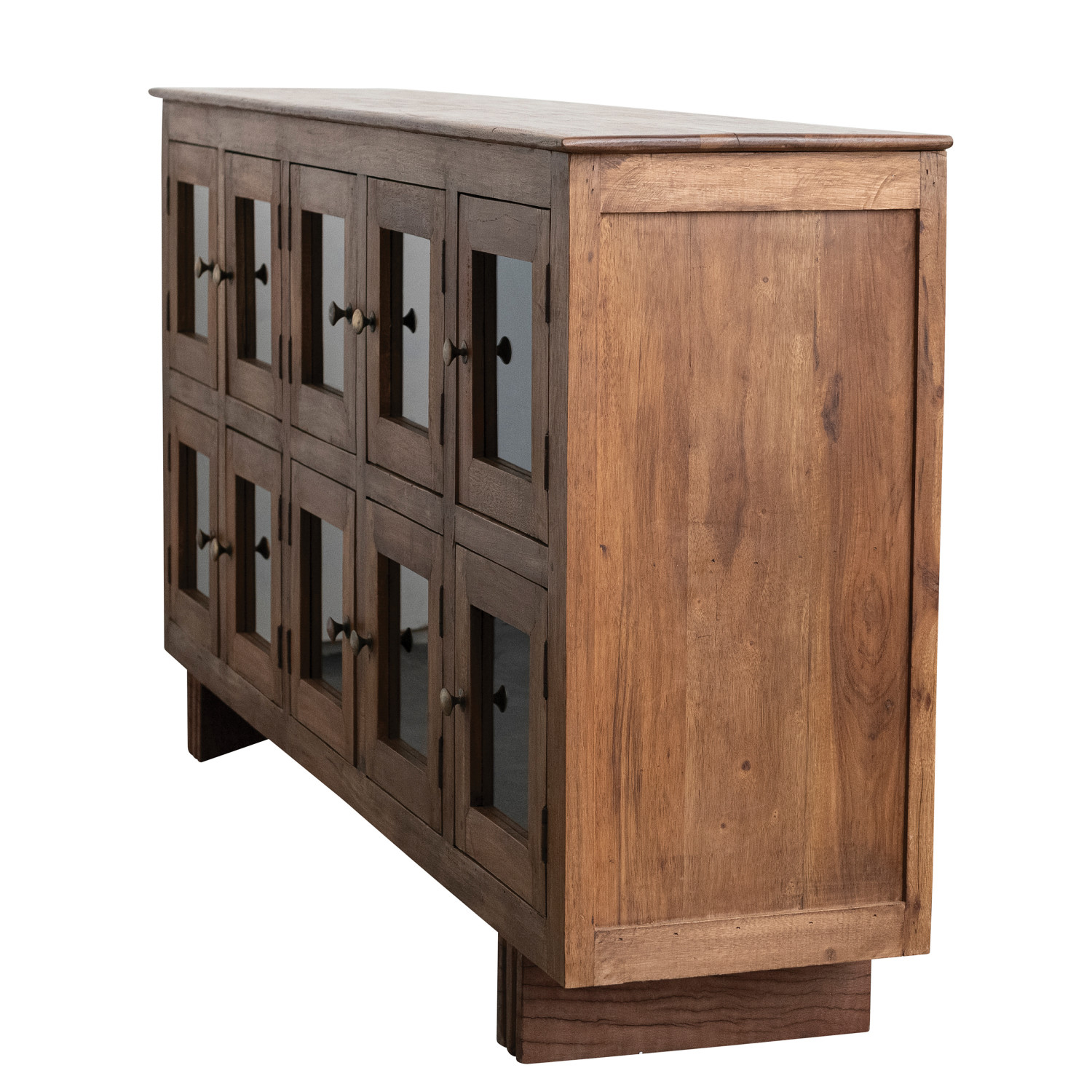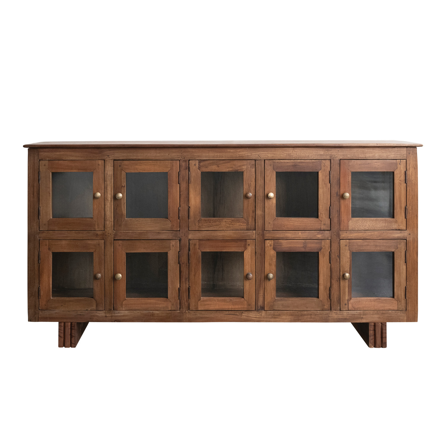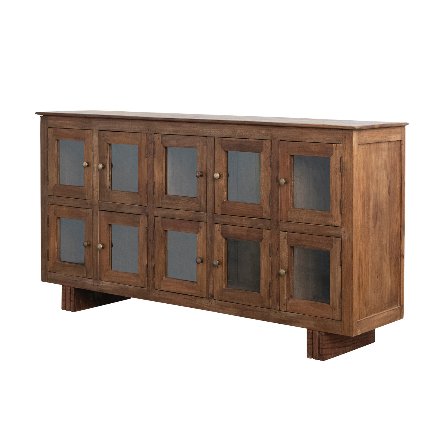 Reclaimed Wood & Mango Wood Sideboard with 10 Glass Doors & Brass Knobs