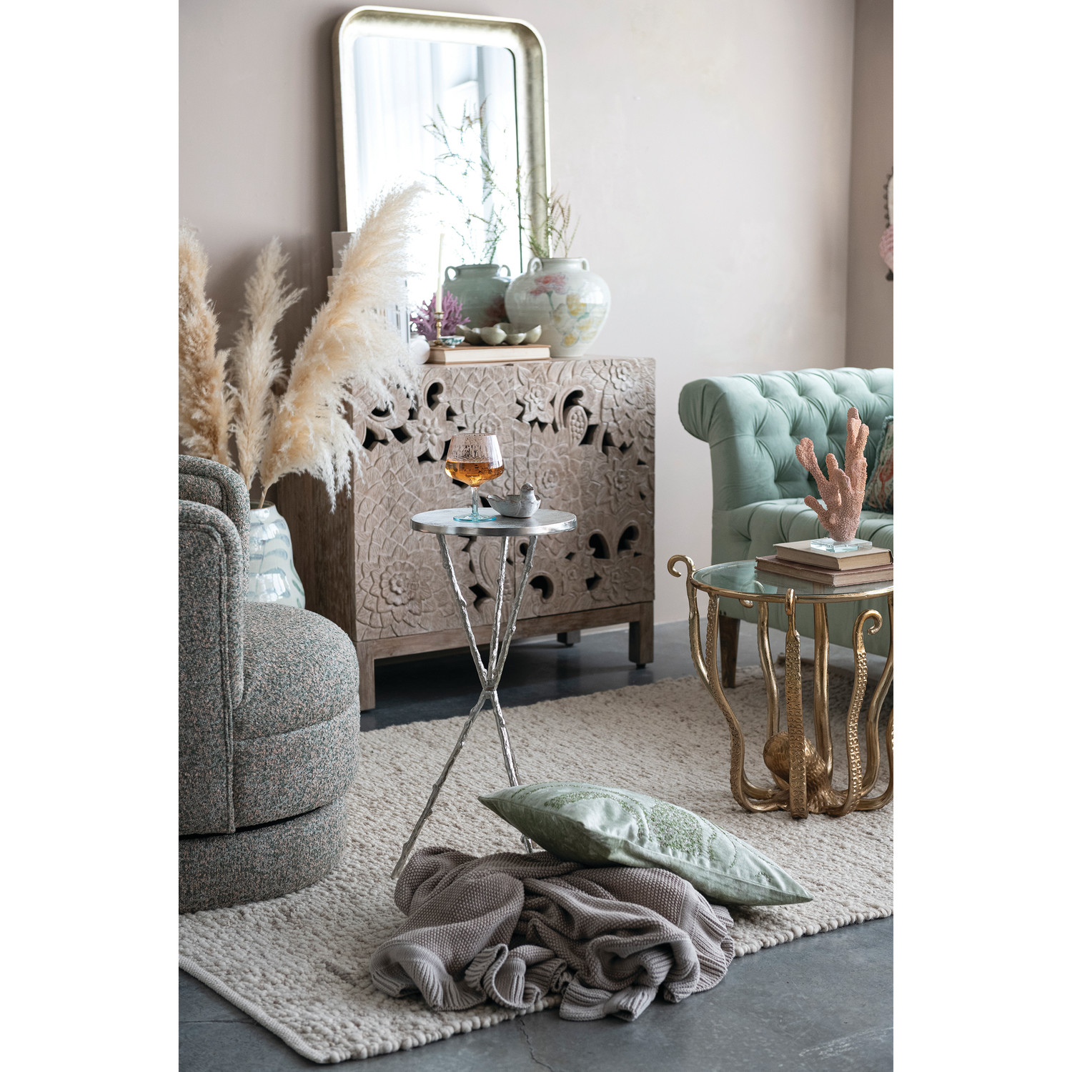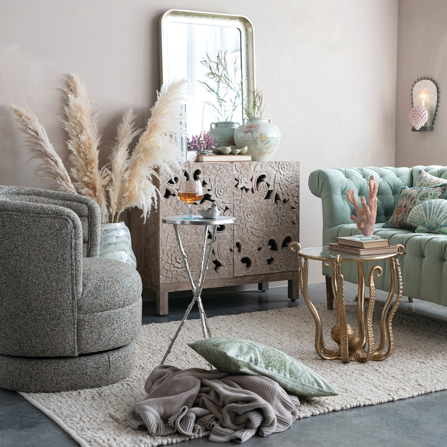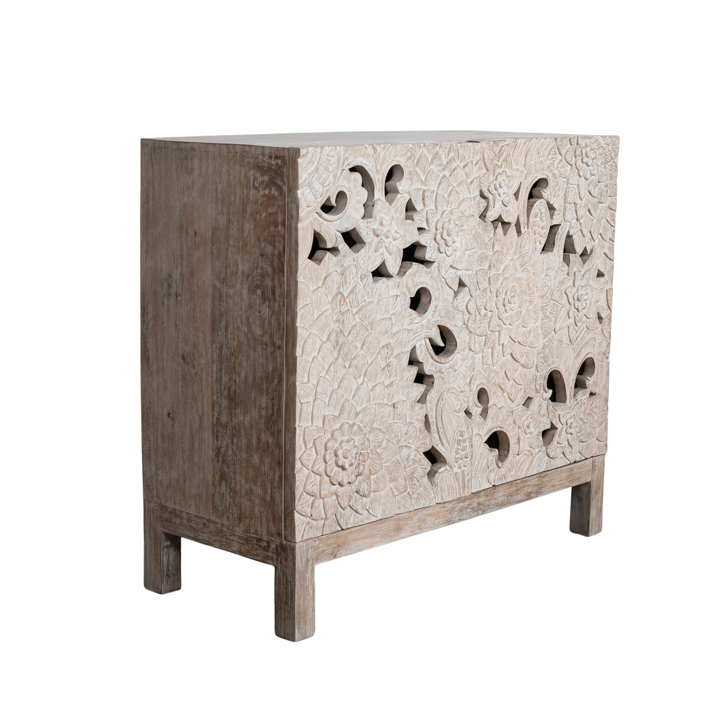 Mango Wood Sideboard with Carved Design, 2 Soft Close Doors & 2 Shelves, Whitewashed