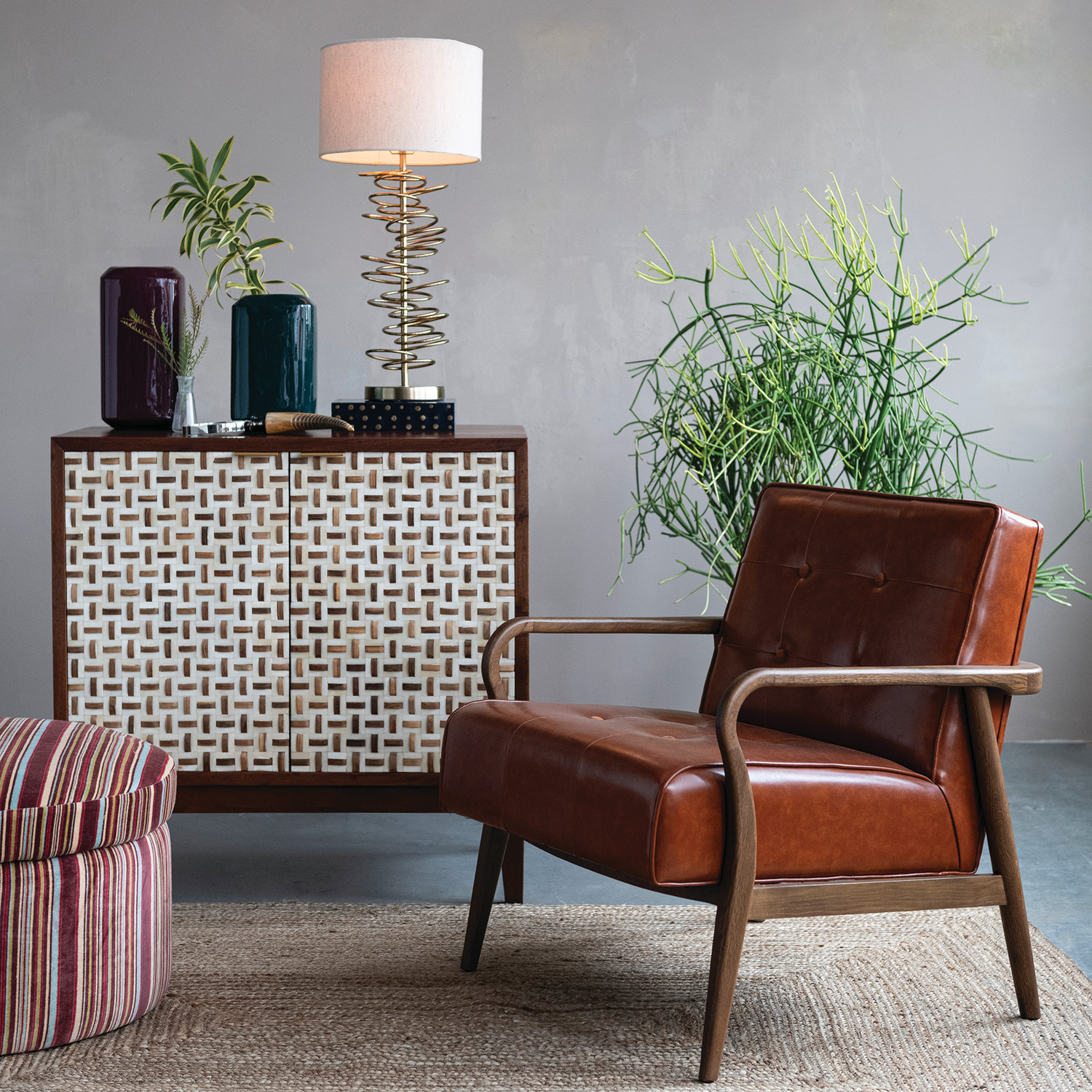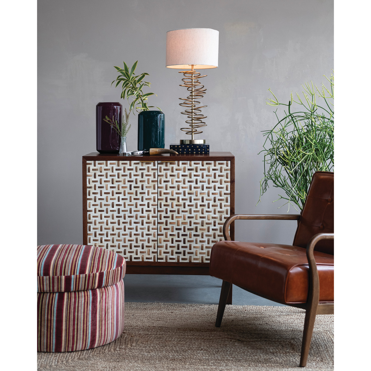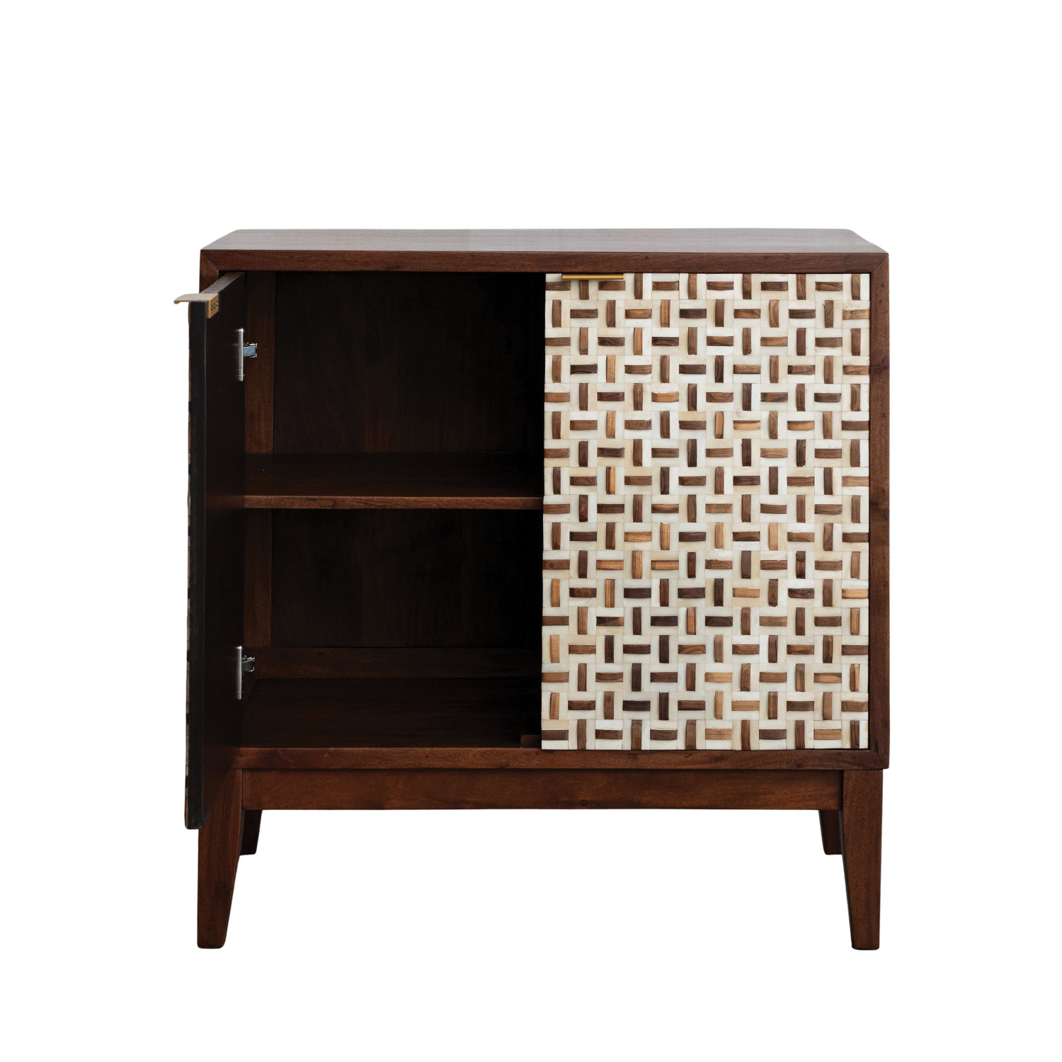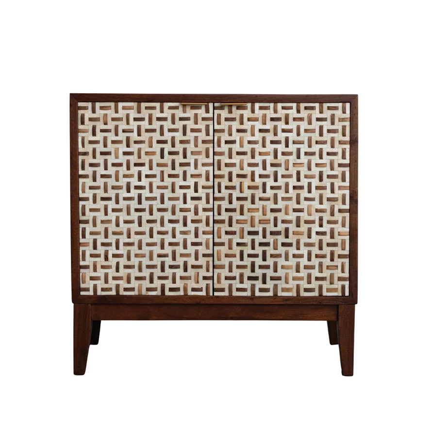 Catalog Name: 33-1/2"W x 18"D x 33"H Acacia & Teakwood Cabinet w/ Bone Inlay, 2 Doors, 2 Shelves & Gold Finish Handles, Walnut Finish & Ivory Color, Truck Ship