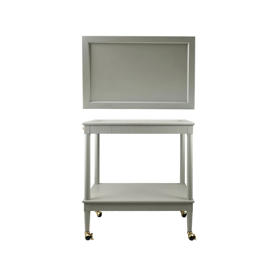 Catalog Name: 30"W x 19"D x 31"H MDF & Wood 2-Tier Bar Cart w/ Gold Finish Metal Rod, Casters & Fluted Edge, Blue, KD