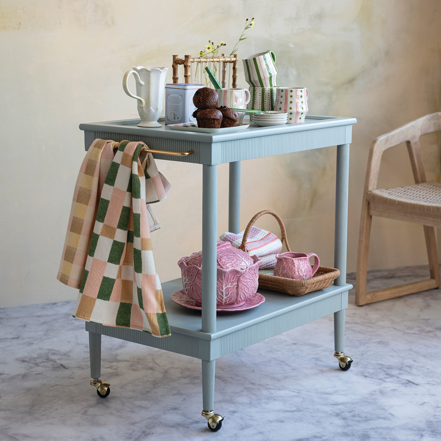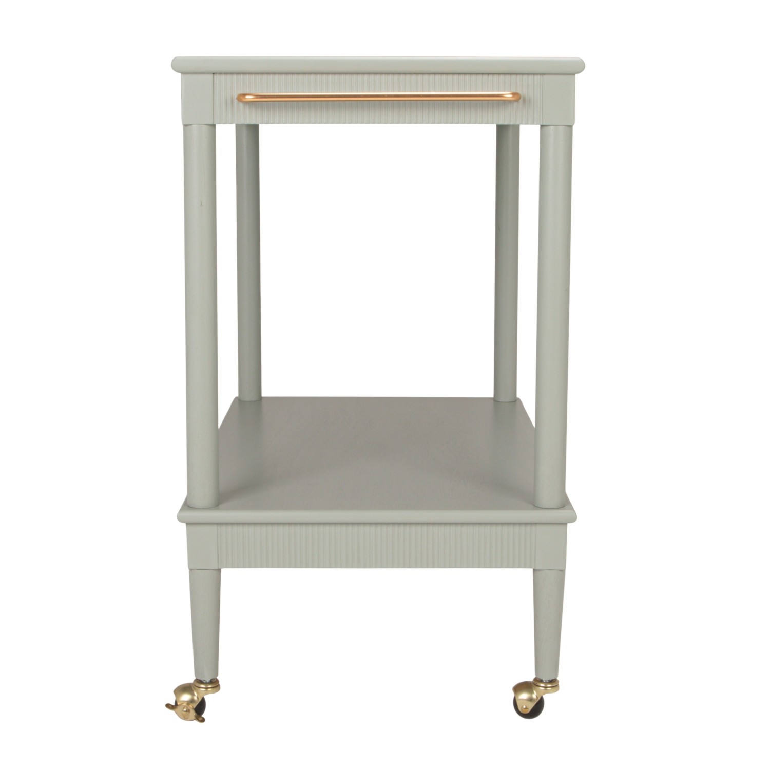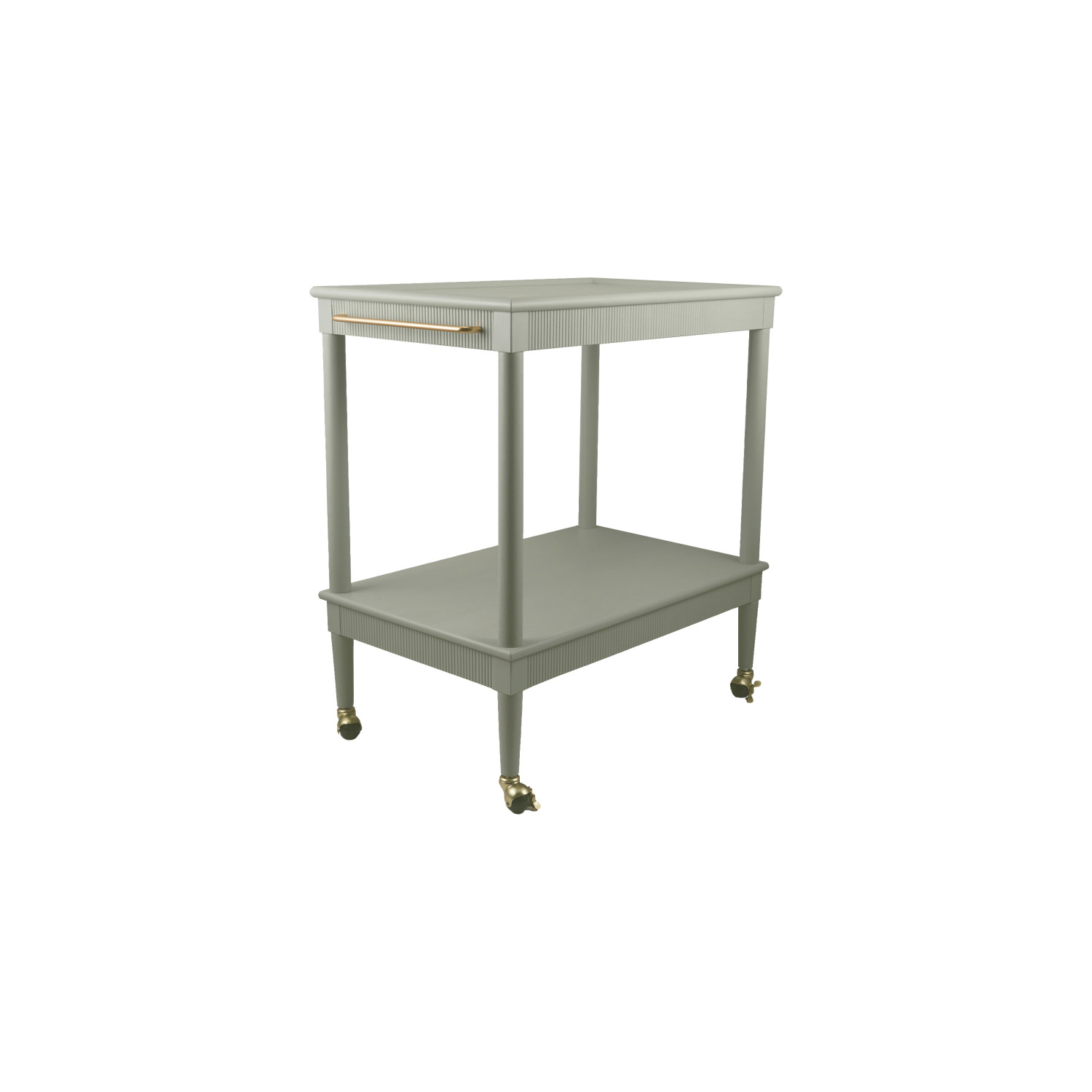 MDF & Wood 2-Tier Bar Cart with Gold Finish Metal Rod, Casters & Fluted Edge, Blue, KD