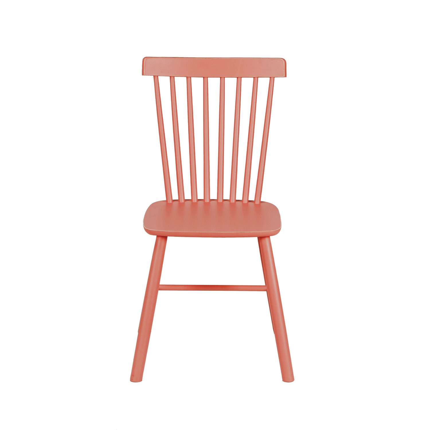 This elegant dining chair is a timeless and sophisticated piece of furniture, featuring a slatted back design that adds charm to any room. Made from durable rubber wood, it is resistant to warping and cracking. The chair offers a comfortable seat and comes in a range of colors, from neutral to vibrant including pink. It is fully assembled and can be used as a single piece or combined with a dining table. This versatile and functional chair is perfect for casual breakfasts, formal dinners, or lively conversations. With a seat height of 18 inches, it is a must-have for any home, making it an ideal addition to any dining space.
