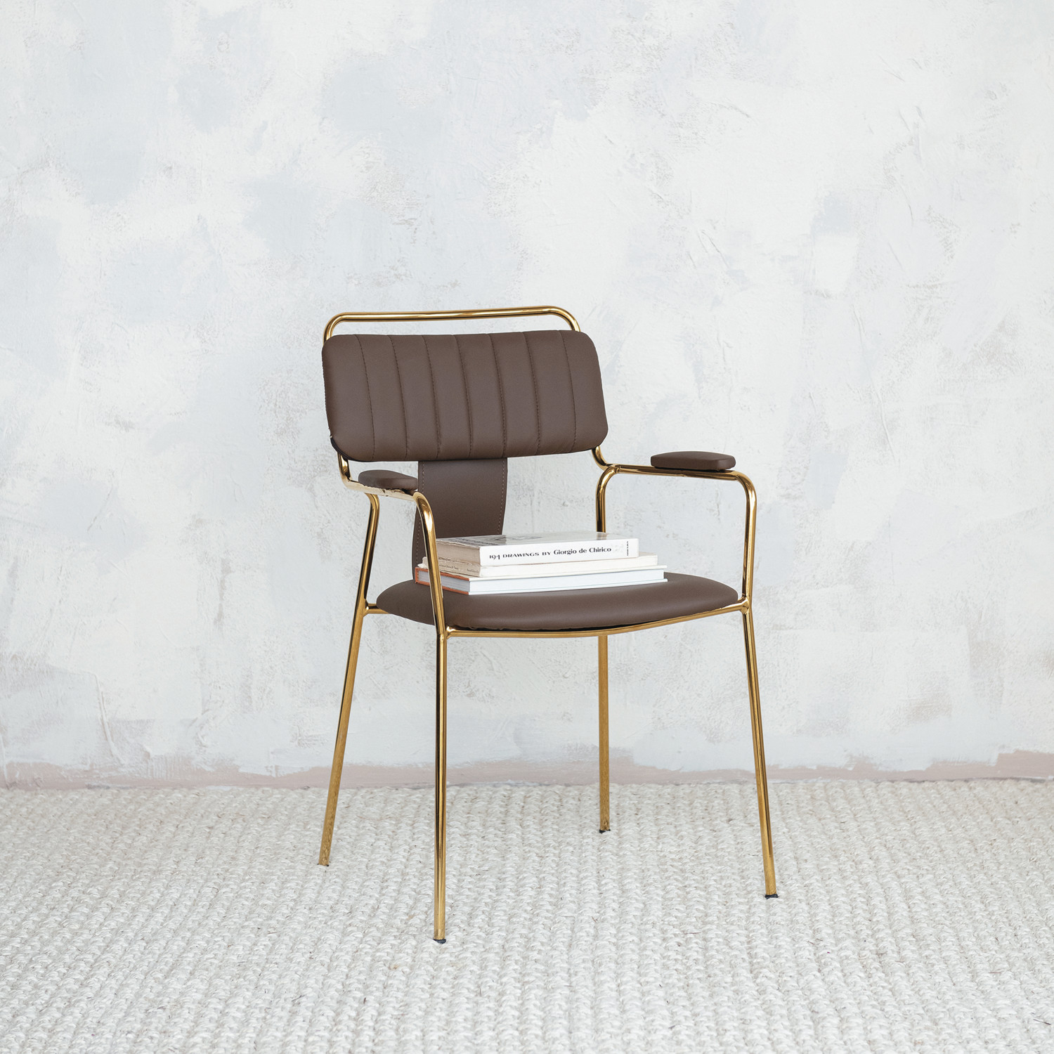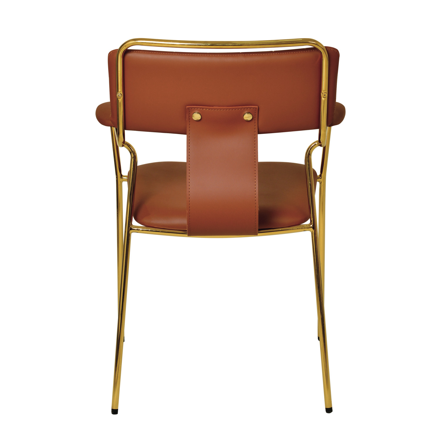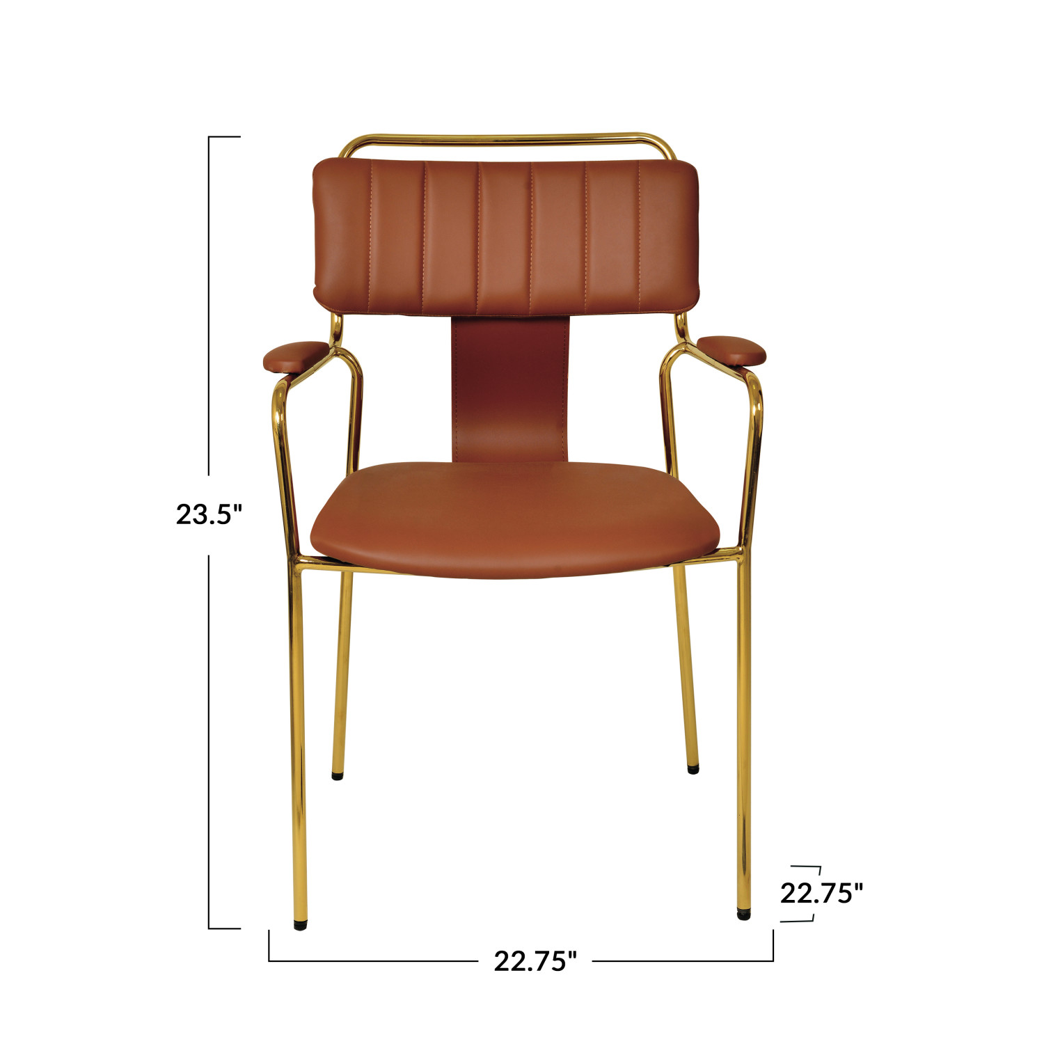 Catalog Name: 22-3/4"W x 22-3/4"D x 33"H Faux Leather Upholstered Dining Chair w/ Gold Electroplated Legs, Brown, Truck Ship