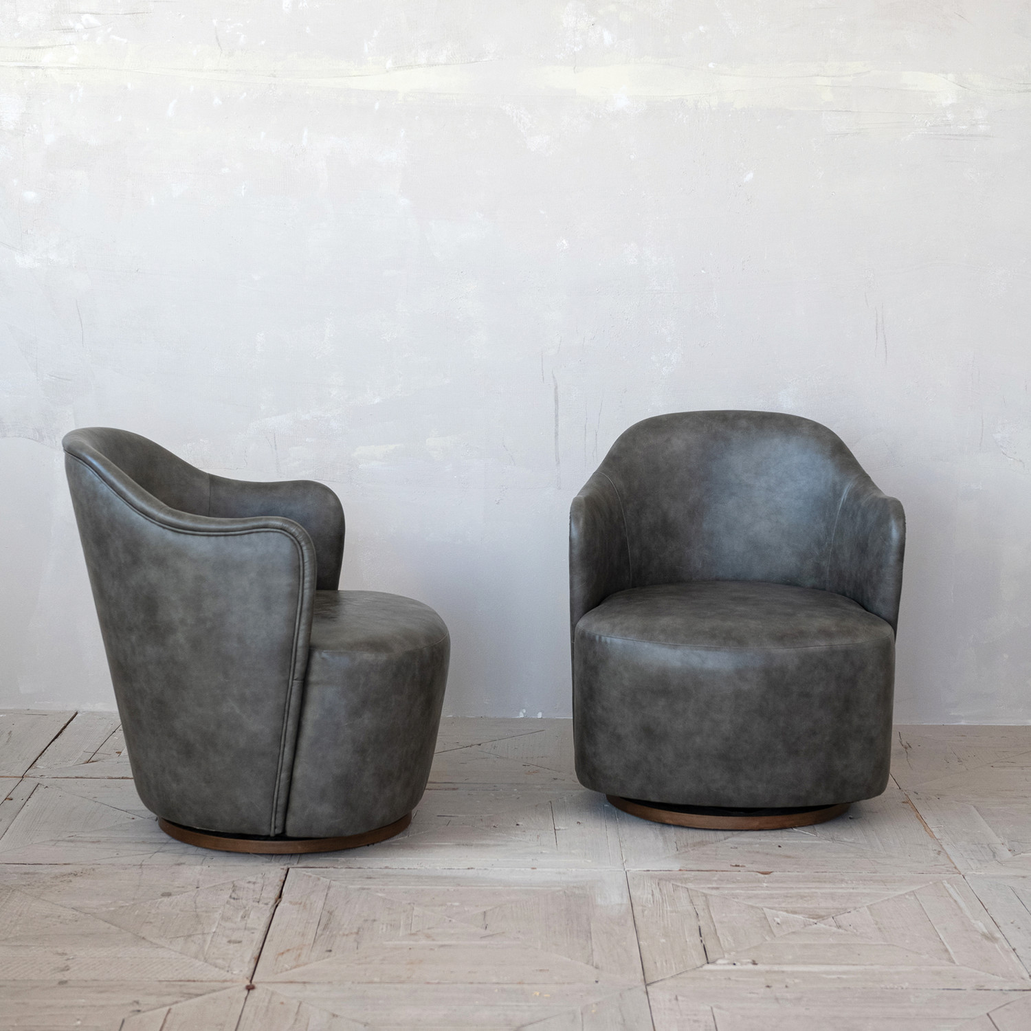 Catalog Name: 24-1/4"W x 27-3/4"D x 30-1/4"H Faux Leather Upholstered Swivel Chair, Grey, Truck Ship