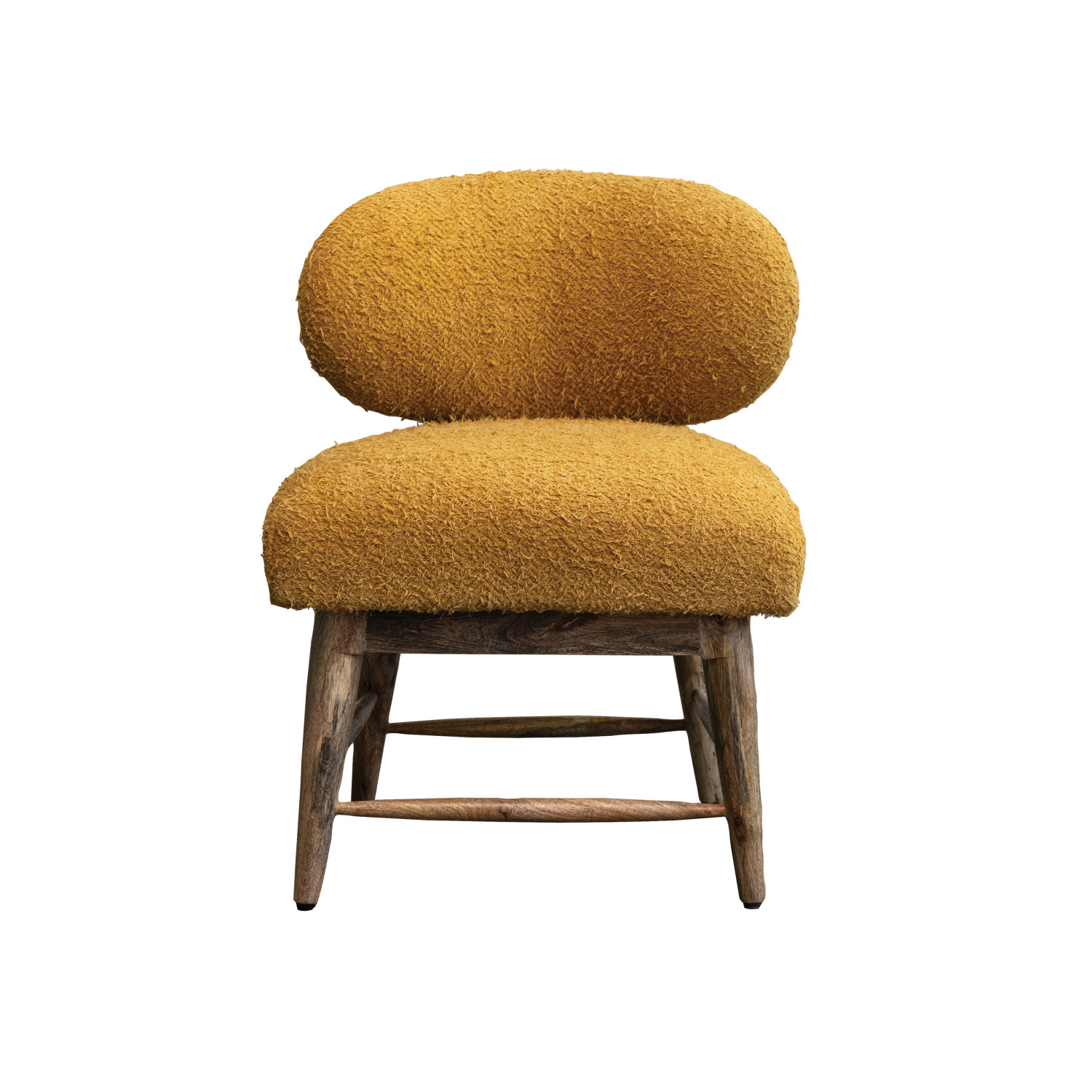 Catalog Name: 24"W x 22-1/2"D x 31-1/2"H Mango Wood & Cotton Bouclé Upholstered Chair w/ Nail Heads, Mustard Color & Natural, Truck Ship