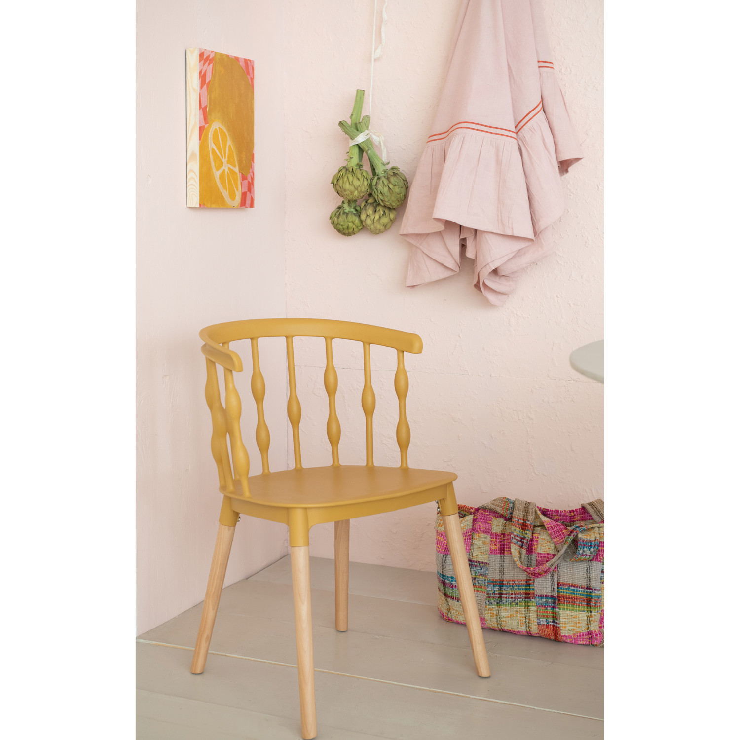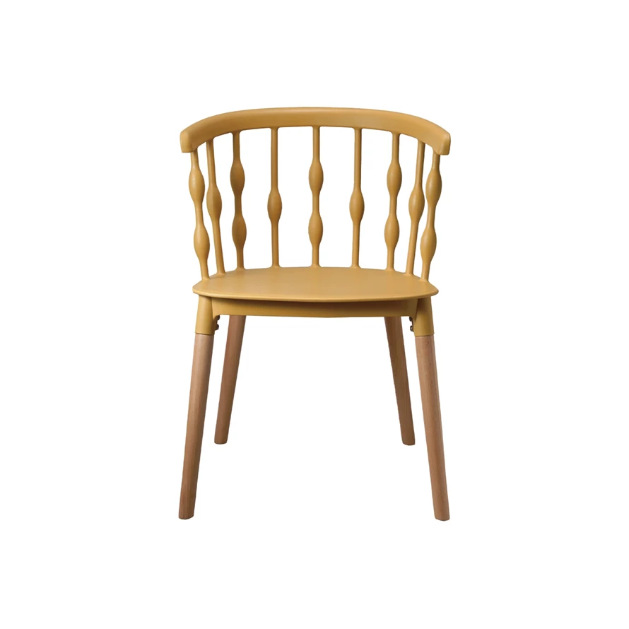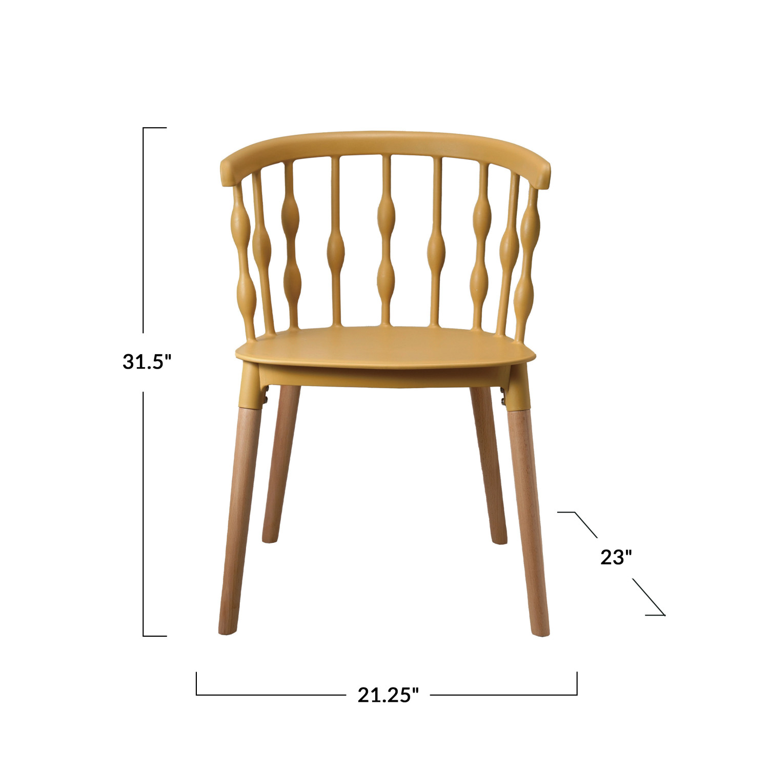 Catalog Name: 21-1/4"W x 23"D x 31-1/2"H Plastic Shaker Dining Chair w/ Wood Legs & Spindle Slatted Back, Mustard Color & Natural, KD