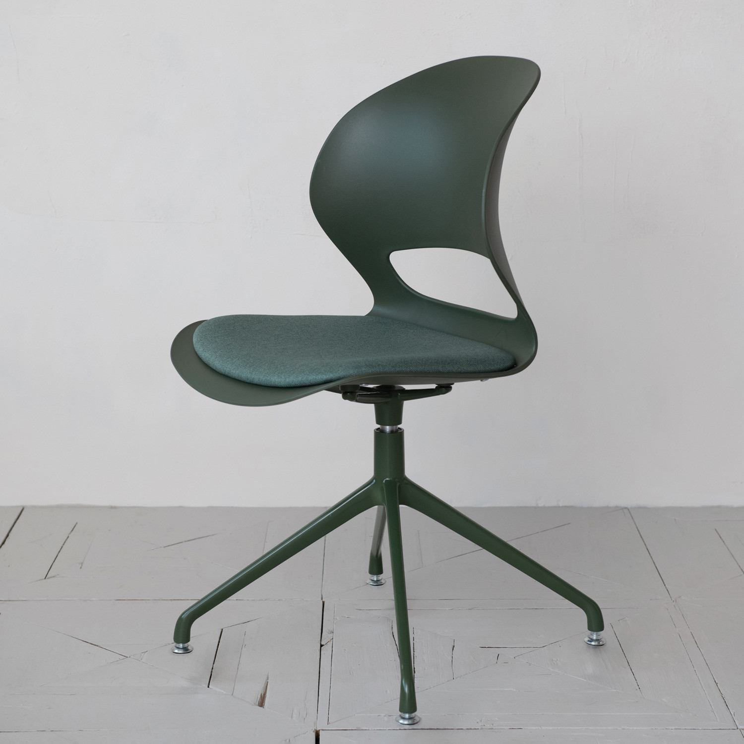 Metal & Plastic Swivel Chair w/ Fabric Upholstered Seat, Green & Grey, KD
