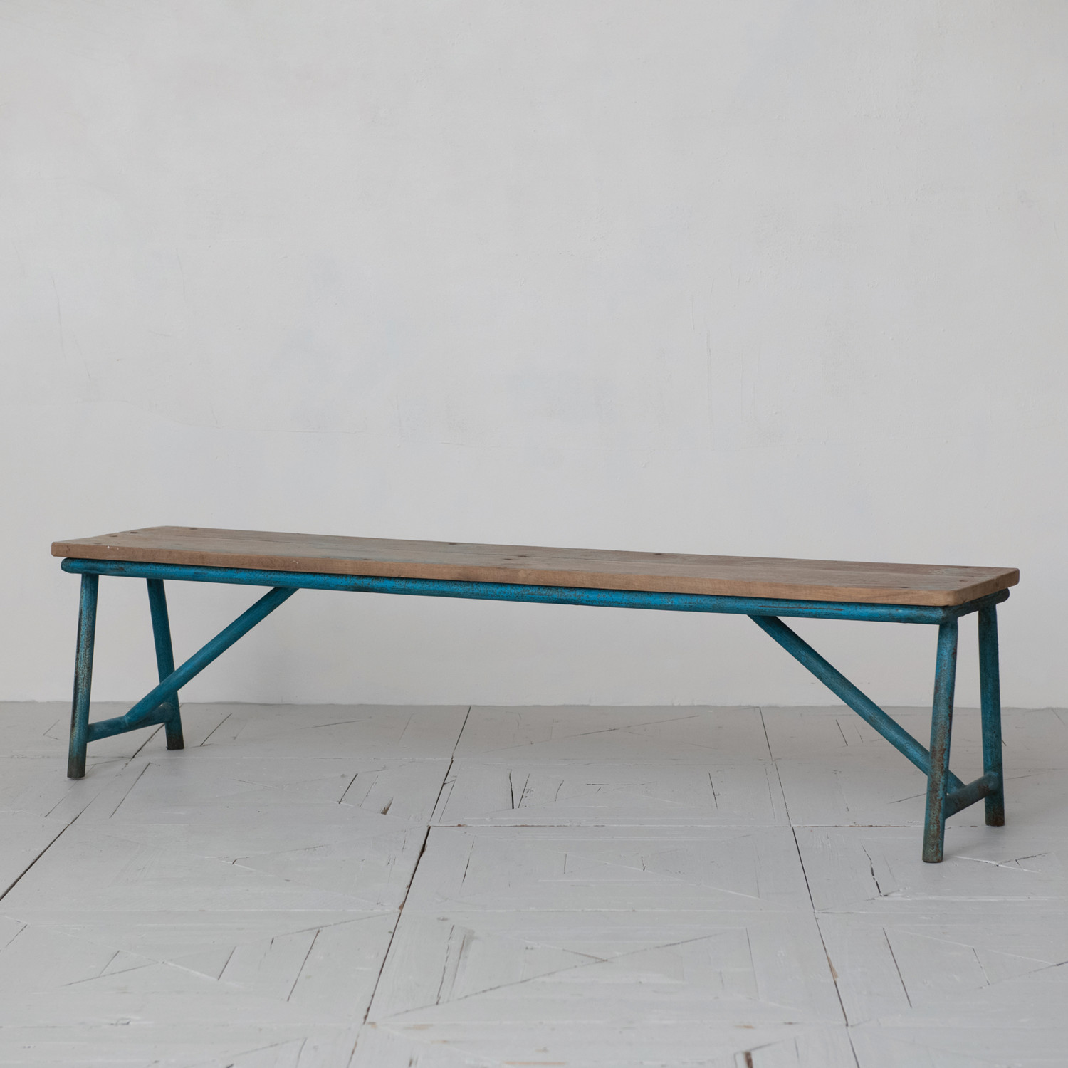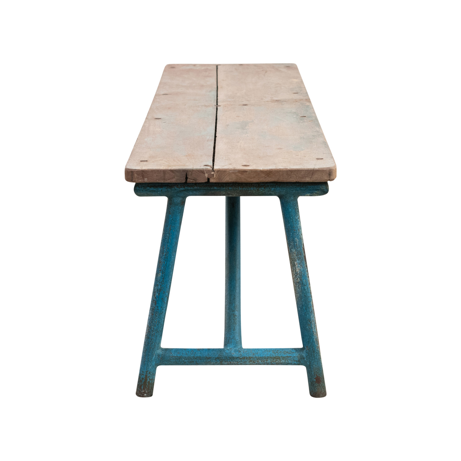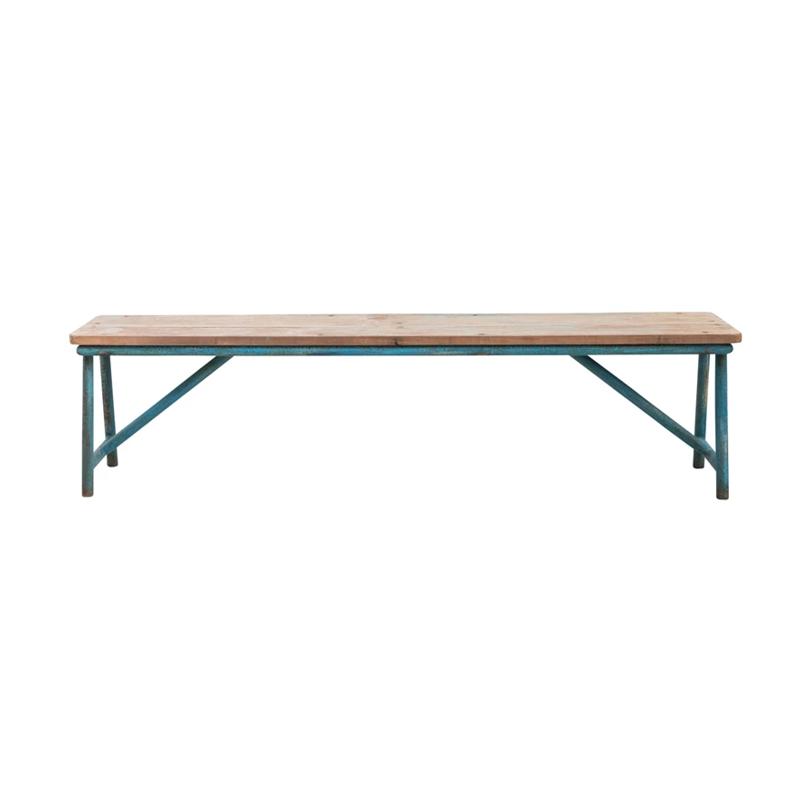 Reclaimed Wood & Metal Bench, Natural & Distressed Blue (Each One Will Vary)