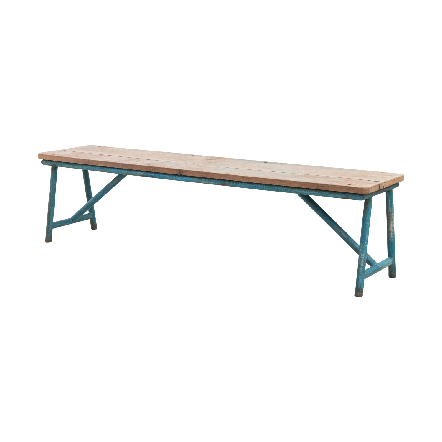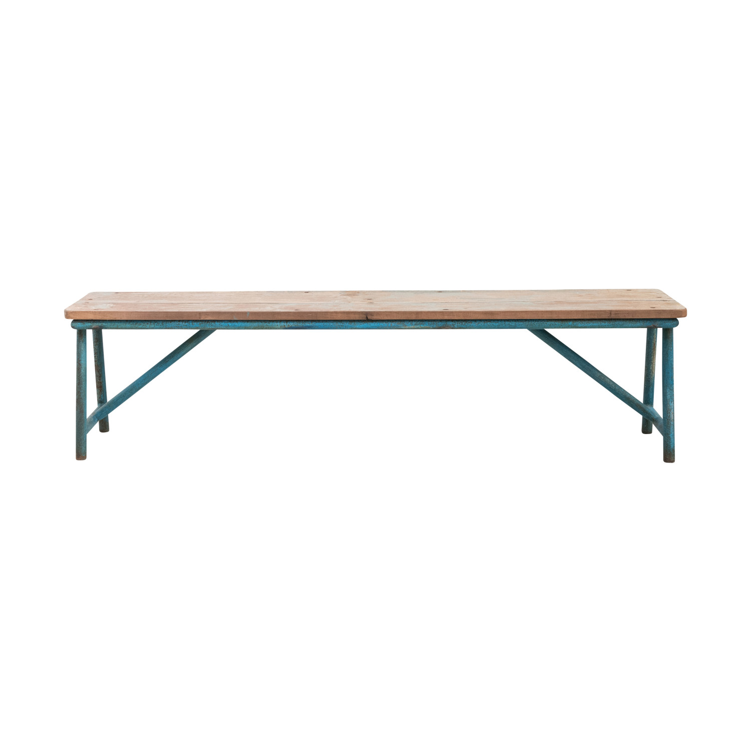 Catalog Name: 68"W x 15"D x 17"H Reclaimed Wood & Metal Bench, Natural & Distressed Blue, Truck Ship (Each One Will Vary)
