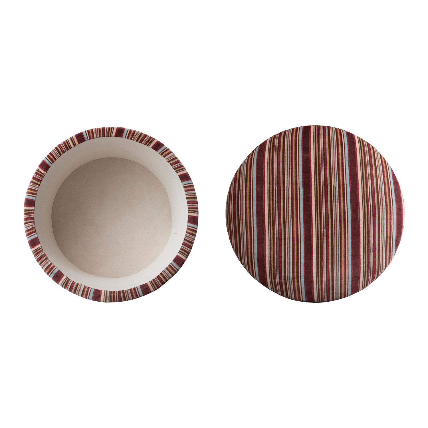 Catalog Name: 16-1/2" Round x 19"H Cotton Velvet Upholstered Striped Ottoman w/ Lined Storage, Multi Color