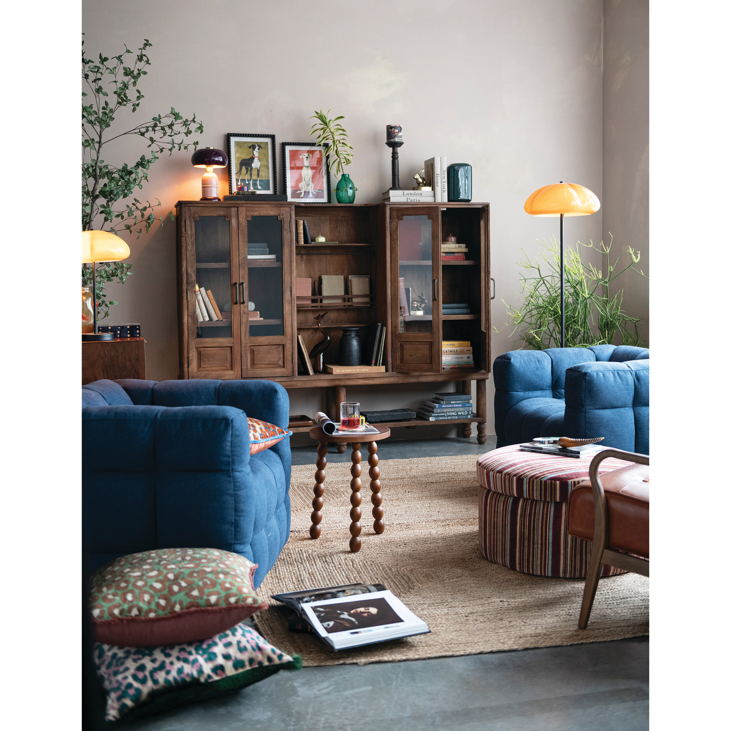 Cotton Velvet Upholstered Striped Ottoman with Lined Storage