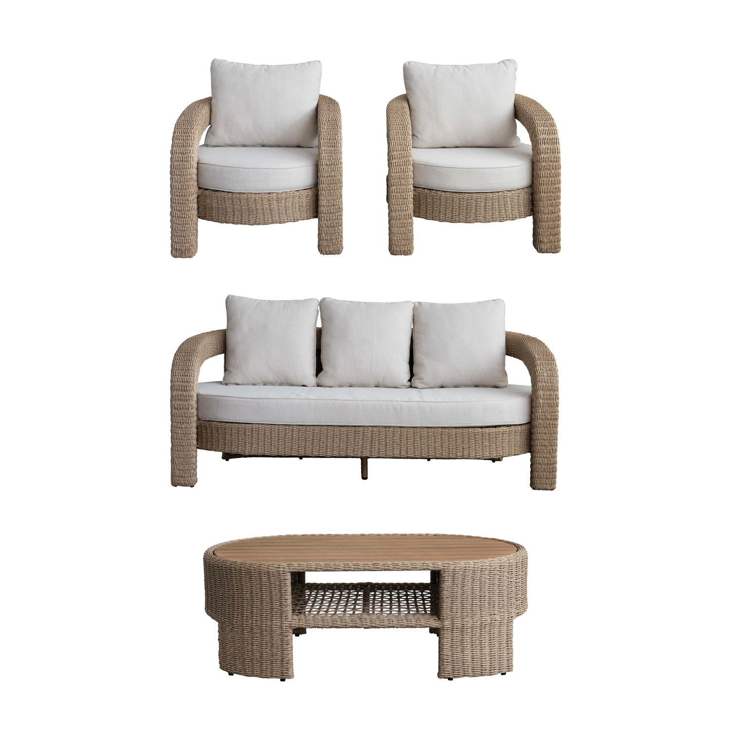 Hand-Woven Indoor/Outdoor Sofa & (2) Chairs with Table & Cushions, Set of 4