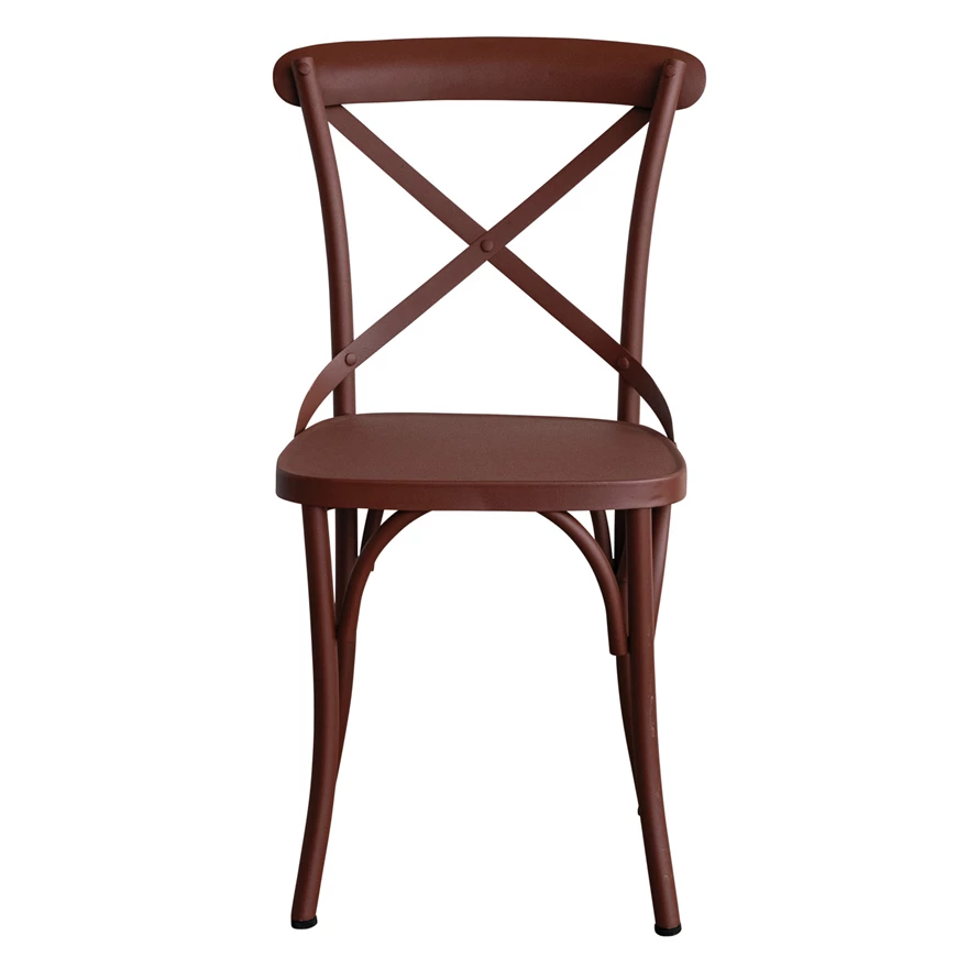 Catalog Name: 19-1/2"W x 16-1/2"D x 34-1/4"H Metal Cross Back Chair, Matte Clay Color, Truck Ship