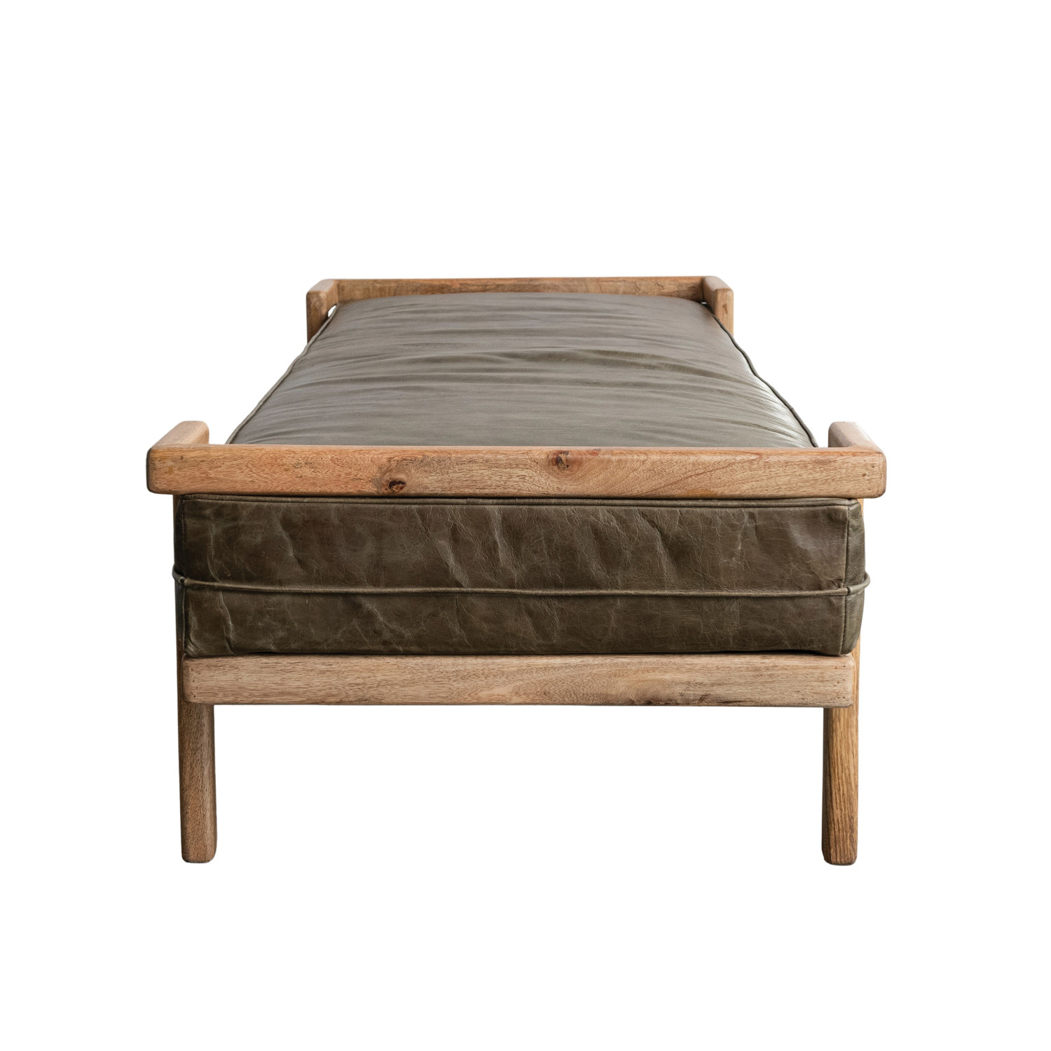 Mango Wood Day Bed/Bench with Removable Distressed Leather Cushion, Natural & Olive Color
