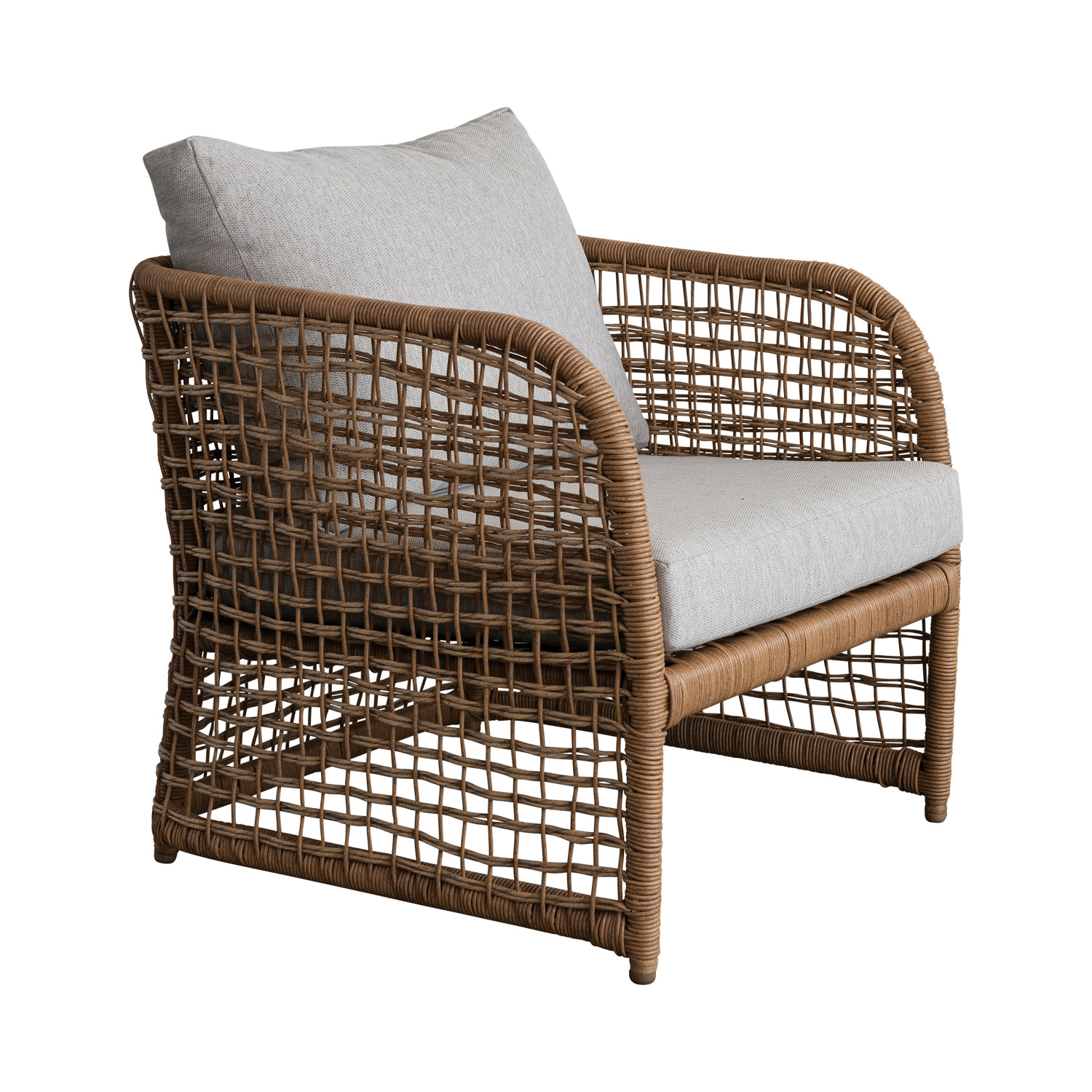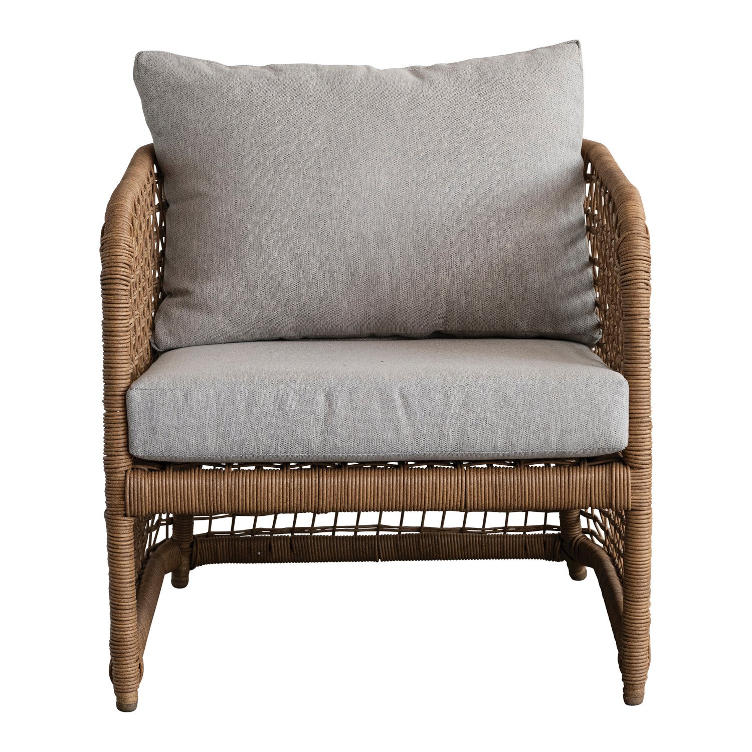Catalog Name: 29-1/2"W x 31-1/2"D x 29-1/2"H Hand-Woven Plastic Wicker Indoor/Outdoor Chair w/ Fabric Cushions, Natural & Cream Color, Truck Ship