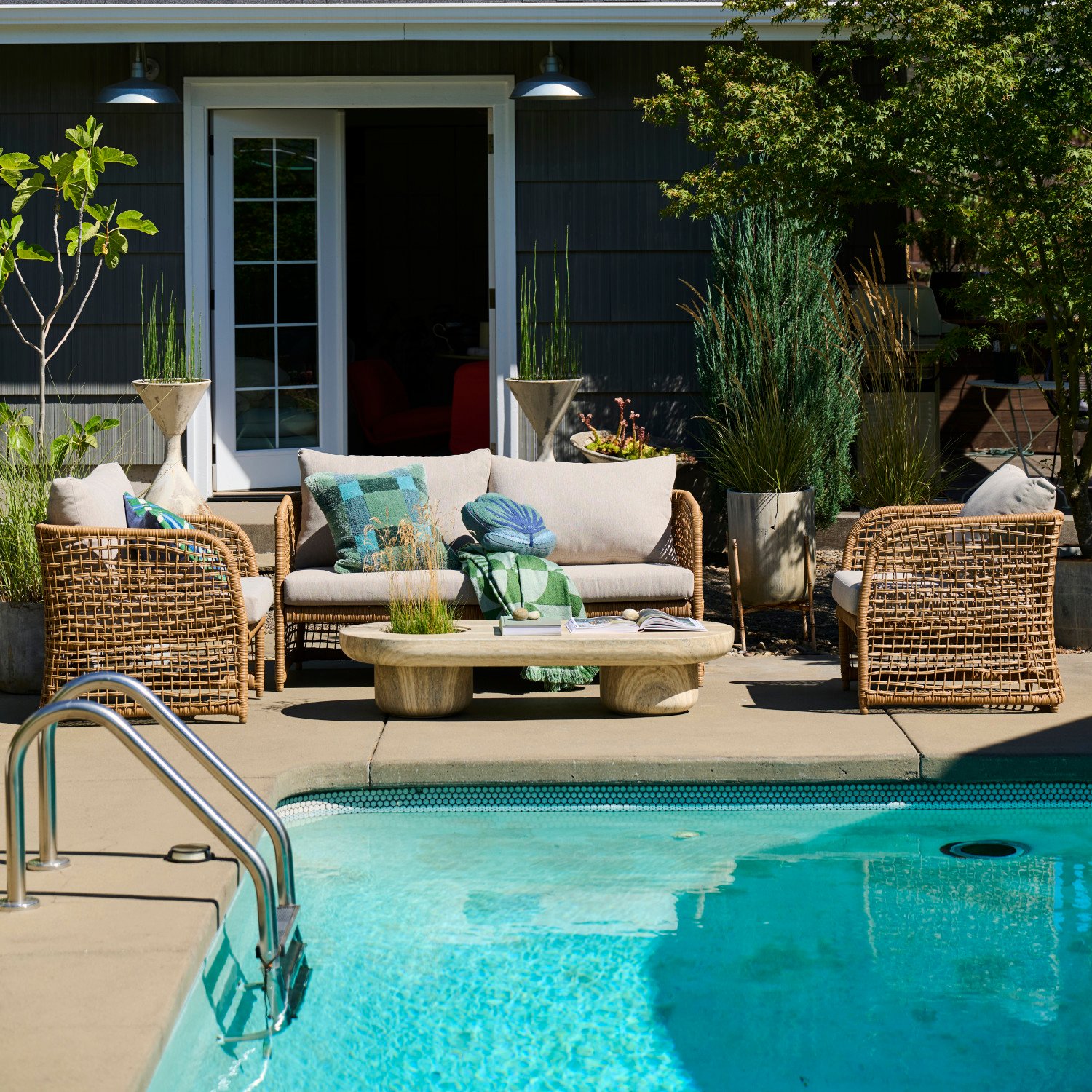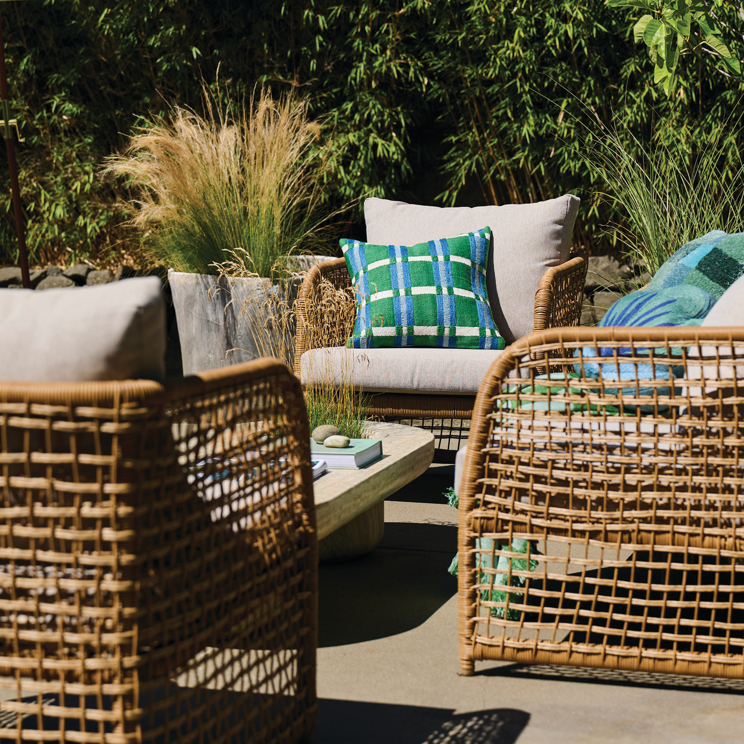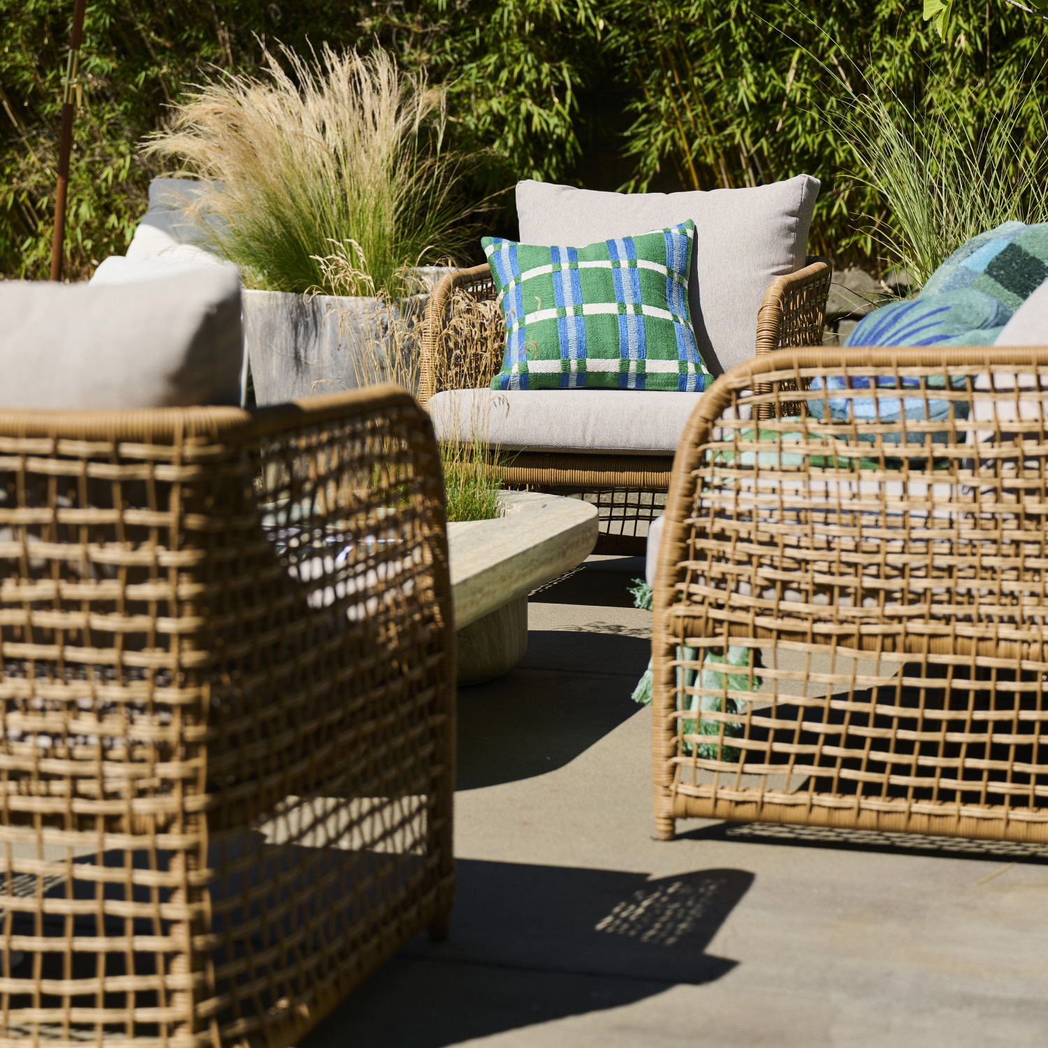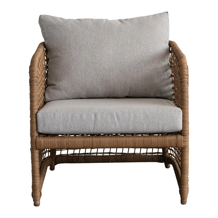 Hand-Woven Plastic Wicker Indoor/Outdoor Chair with Fabric Cushions