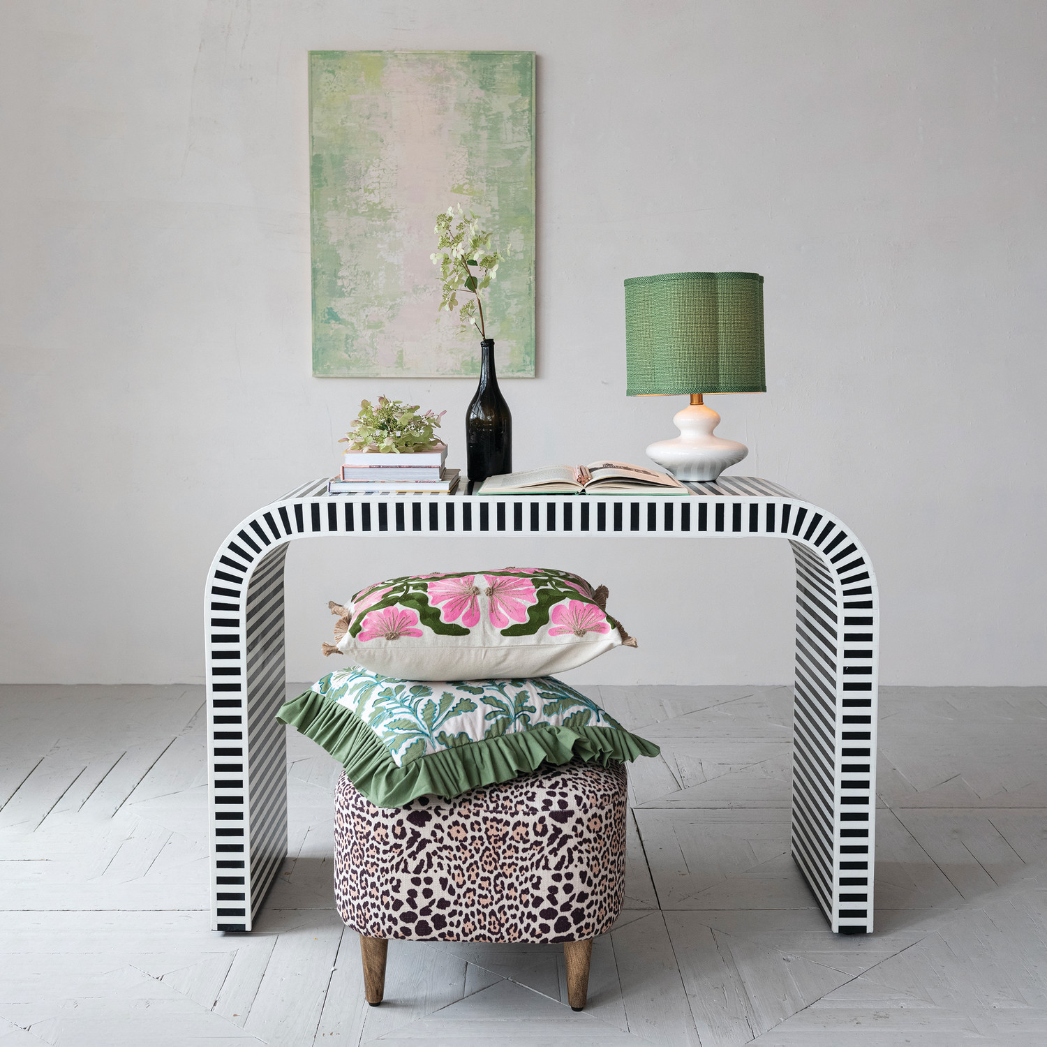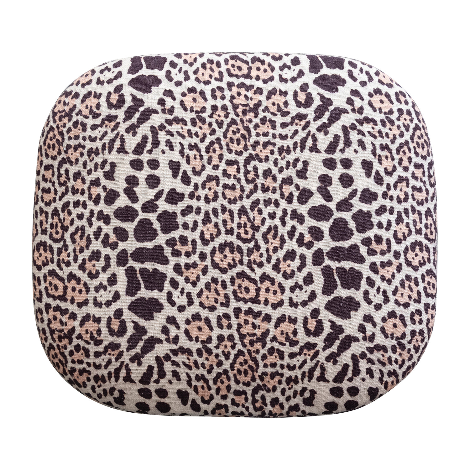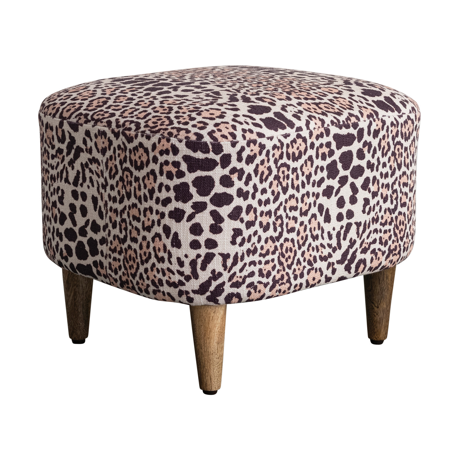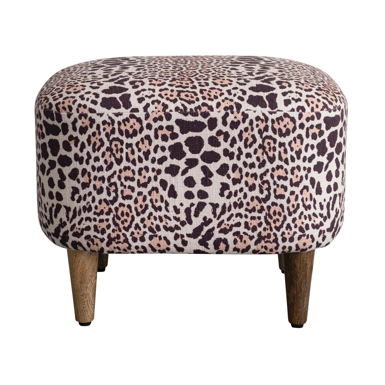 Cotton Slub Upholstered Leopard Print Stool/Ottoman with Mango Wood Legs & Natural