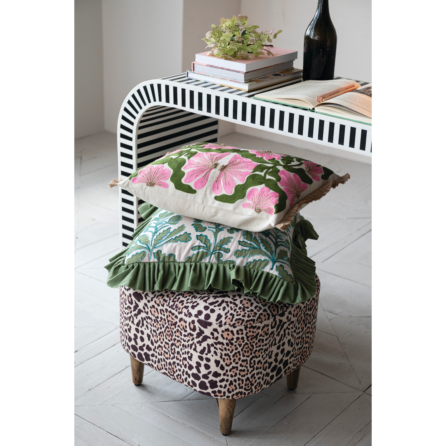 Catalog Name: 20"L x 18"W x 15-1/2"H Cotton Slub Upholstered Leopard Print Stool/Ottoman w/ Mango Wood Legs, Multi Color & Natural
