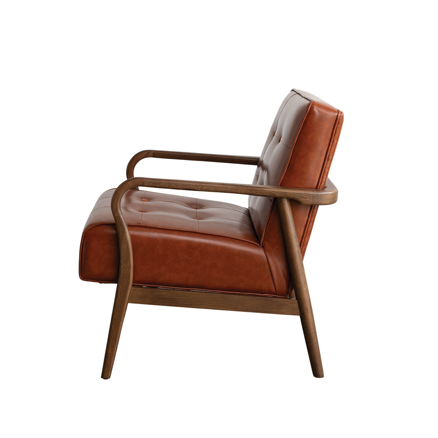 Catalog Name: 26-1/2"W x 28-1/2"D x 30-3/4"H Oak Wood & Faux Leather Tufted Arm Chair, Natural & Cognac Color, Truck Ship