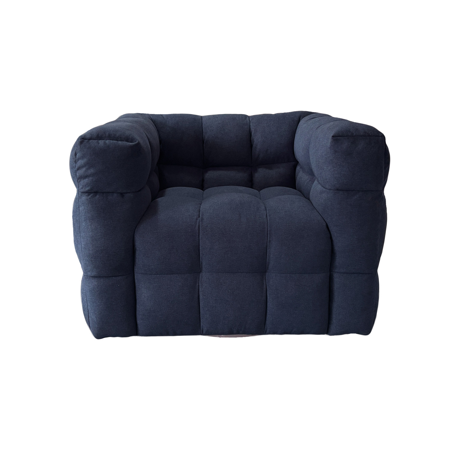 Catalog Name: 37"W x 32-1/2"D x 28"H Fabric Upholstered Tufted Swivel Arm Chair, Navy Color, Truck Ship