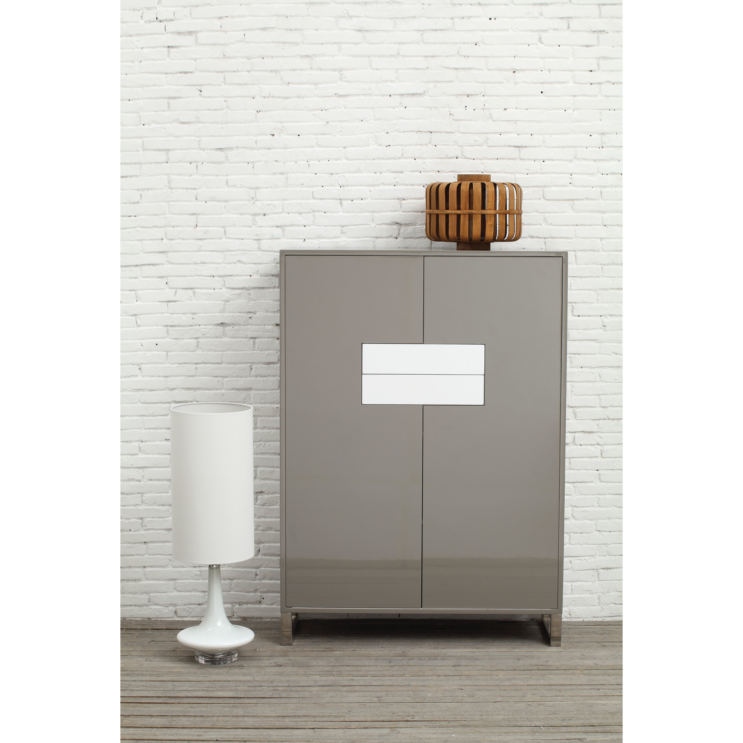 Catalog Name: 39-1/2"L x 15-3/4"W x 55"H Lacquered MDF Armoire w/ 3 Shelves & 2 Drawers, Grey & White