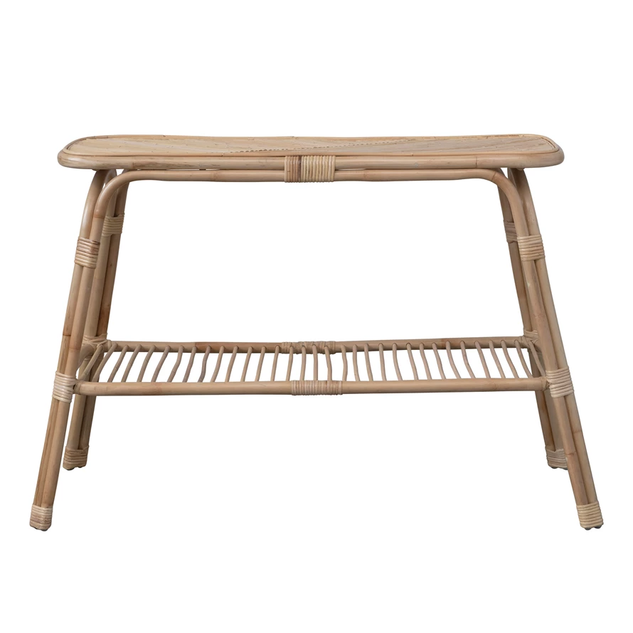 Hand-Woven Rattan Console Table with Shelf